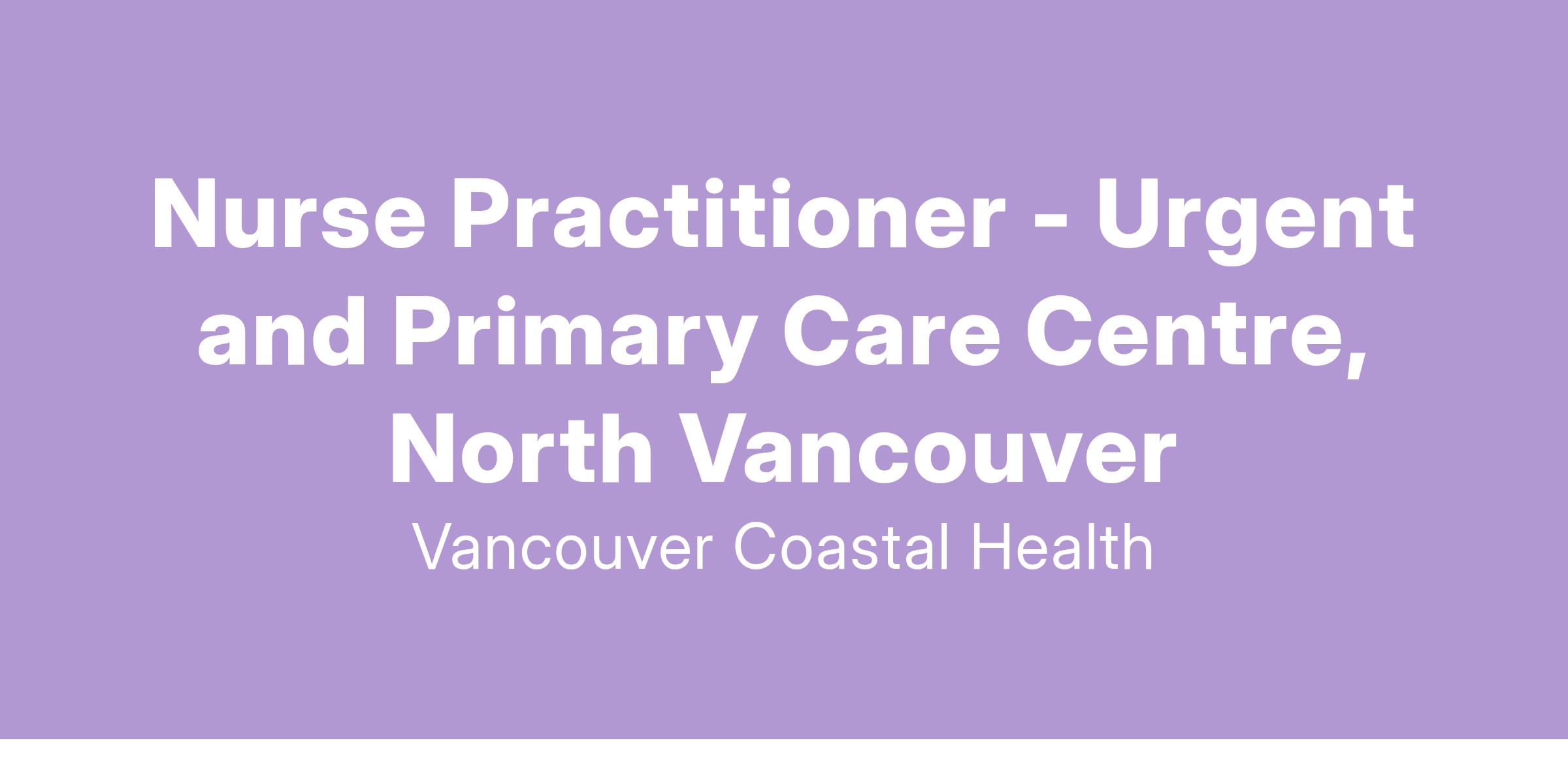 Vancouver Coastal Health is looking for a Nurse Practitioner to join the North Vancouver UPCC team. Apply today to join our team!