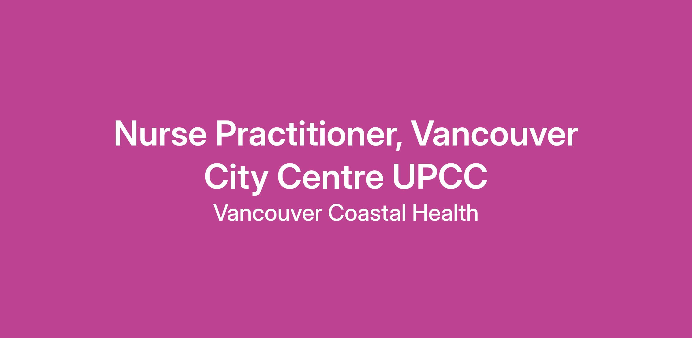Come work as a Nurse Practitioner with Vancouver Coastal Health (VCH)!