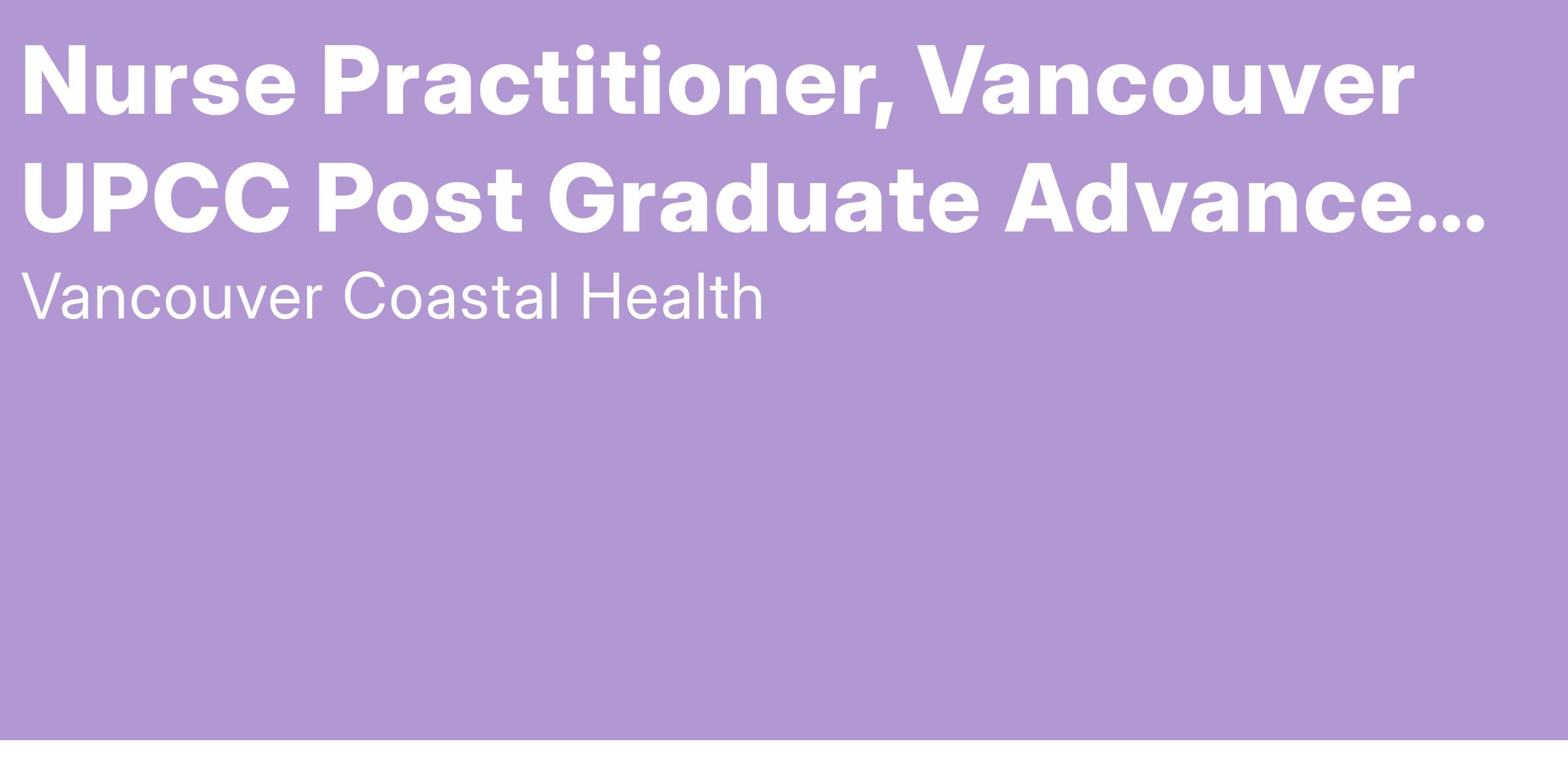 Come work as a Nurse Practitioner with Vancouver Coastal Health (VCH)!
