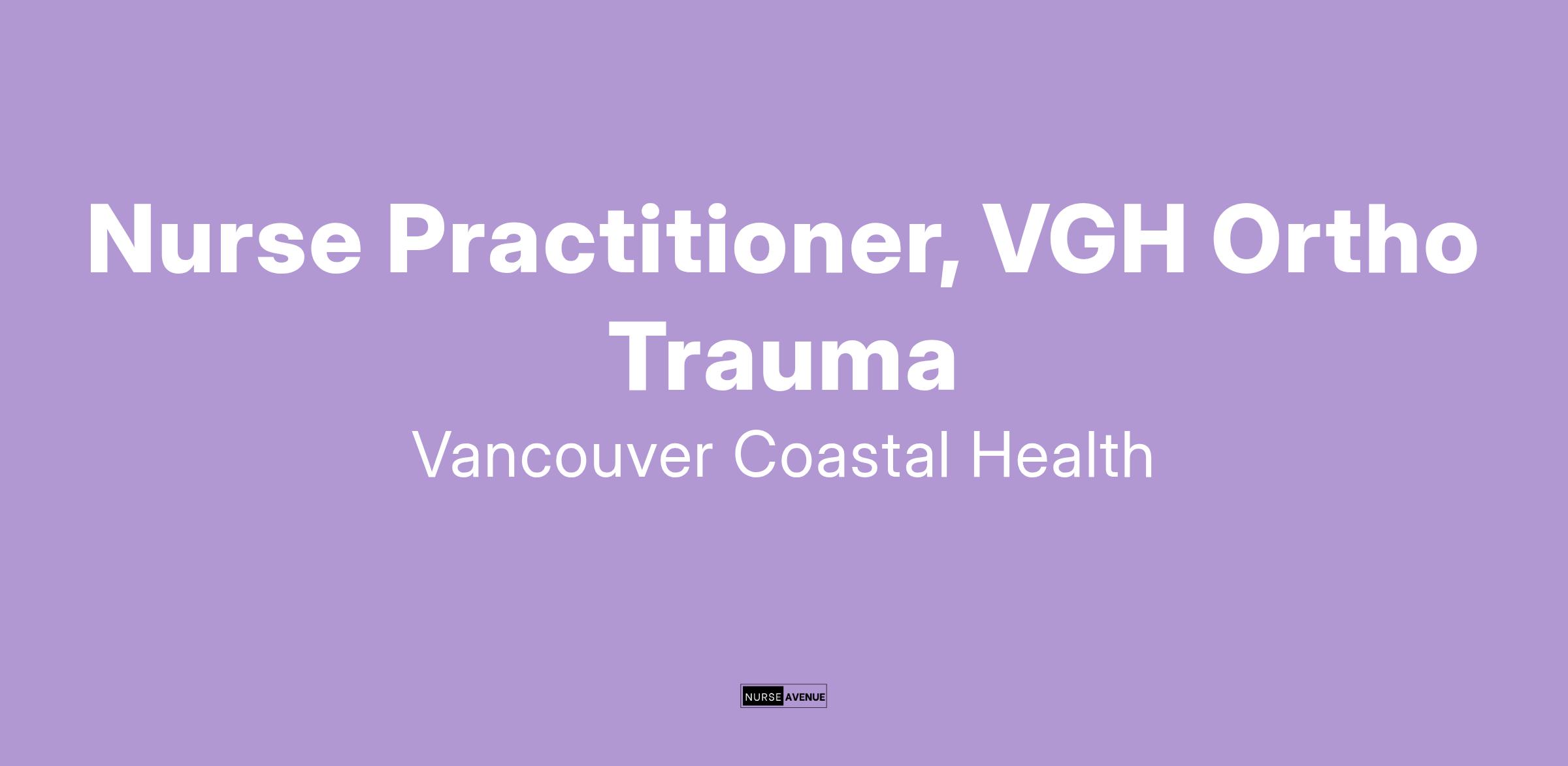 This new Ortho Trauma Nurse Practitioner role offers an exciting possibility for the NP focused on acute care, who enjoys a fast-paced environment and working in a strong interdisciplinary team. Located at Vancouver General Hospital, this role aims to provide consistent medical care to inpatients, reducing average length of stay and improving patient flow. Nurse Practitioners at VCH are privileged and credentialed as members of Medical Staff. We believe in sustainable and exciting NP positions, and you will be supported by NP Professional Practice as well as your VGH Medical Leadership, with opportunity to grow as a leader.
