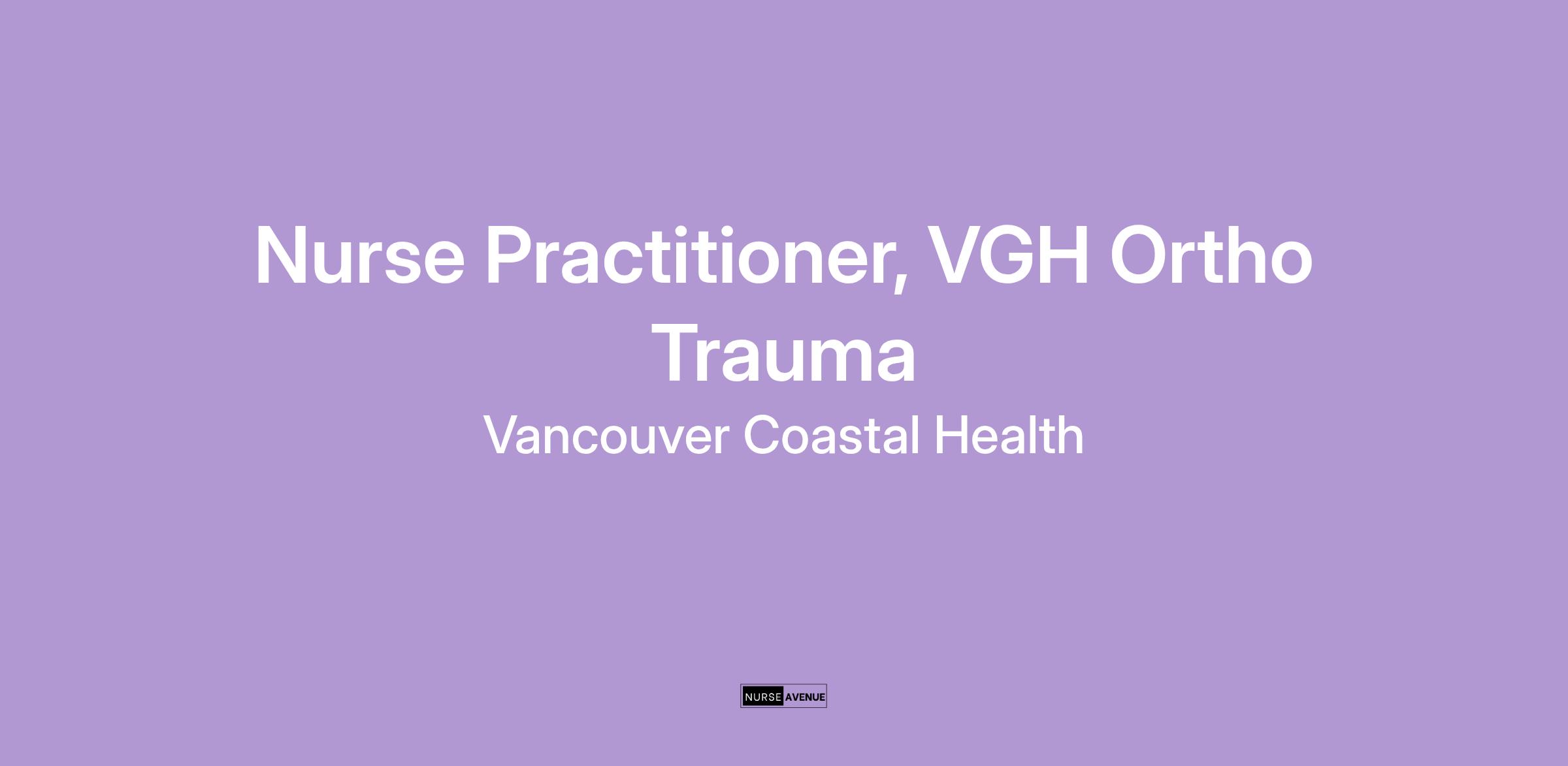 This Ortho Trauma Nurse Practitioner role offers an exciting possibility for the NP focused on acute care, who enjoys a fast-paced environment and working in a strong interdisciplinary team. Located at Vancouver General Hospital, this role aims to provide consistent medical care to inpatients, reducing average length of stay and improving patient flow. Nurse Practitioners at VCH are privileged and credentialed as members of Medical Staff. We believe in sustainable and exciting NP positions, and you will be supported by NP Professional Practice as well as your VGH Medical Leadership, with opportunity to grow as a leader.
