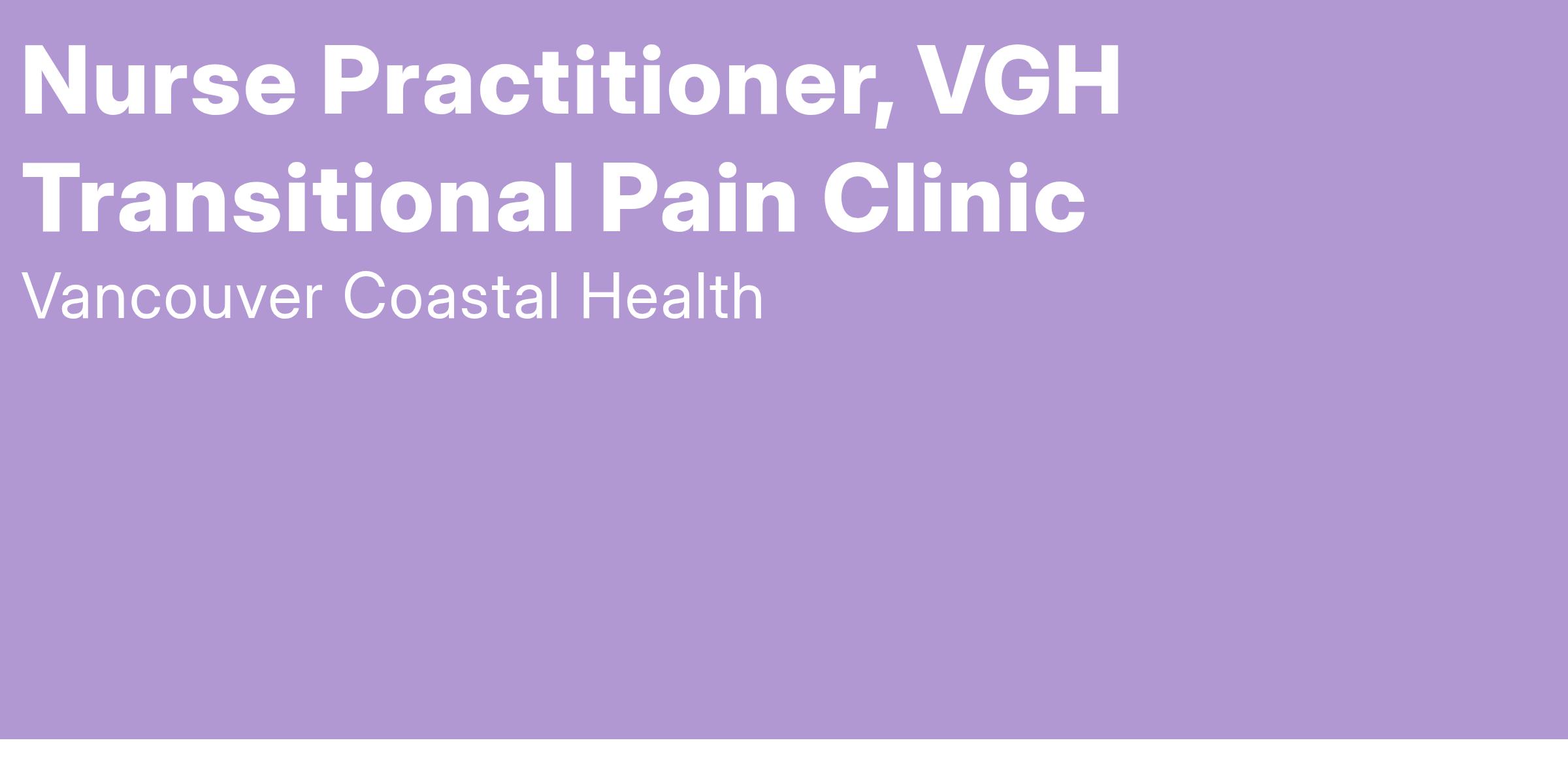 We are seeking a dedicated Nurse Practitioner to join the Transitional Pain Clinic at Vancouver General Hospital (VGH), a world-class facility and tertiary referral center for the province. In this role, you will work as part of a supportive, interdisciplinary team to provide comprehensive medical care to patients experiencing chronic pain. The clinic fosters a collaborative culture, offering an opportunity to engage with skilled professionals in delivering patient-centered care. This is an excellent opportunity for a Nurse Practitioner passionate about pain management and working within a dynamic, multidisciplinary environment.
