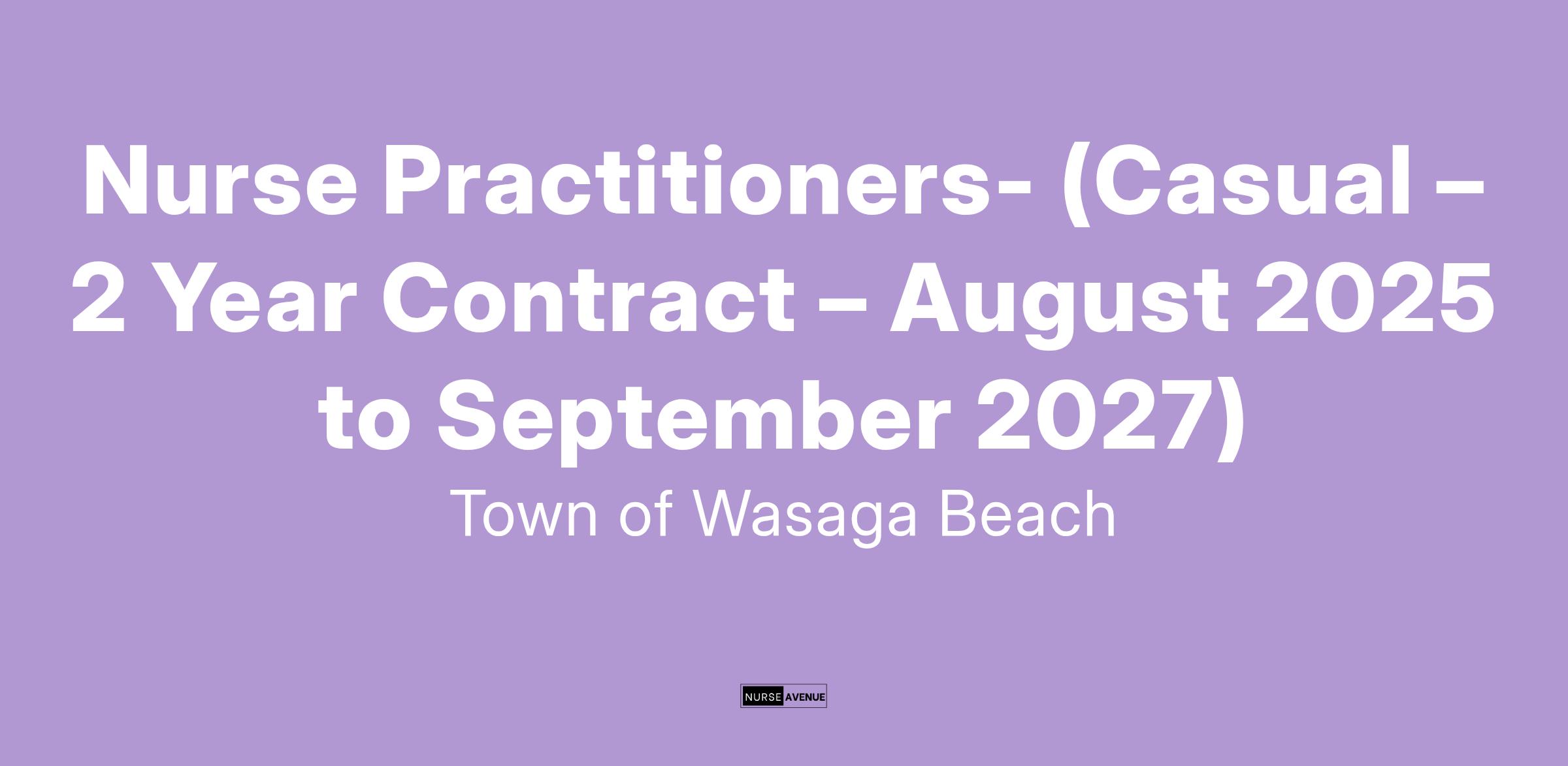 The Town of Wasaga Beachis seeking casual Nurse Practitioner (NPs) for a new After-Hours Medical Clinic. The After Hours Clinic will operate three times a week from 4:30pm to 8:30pm.