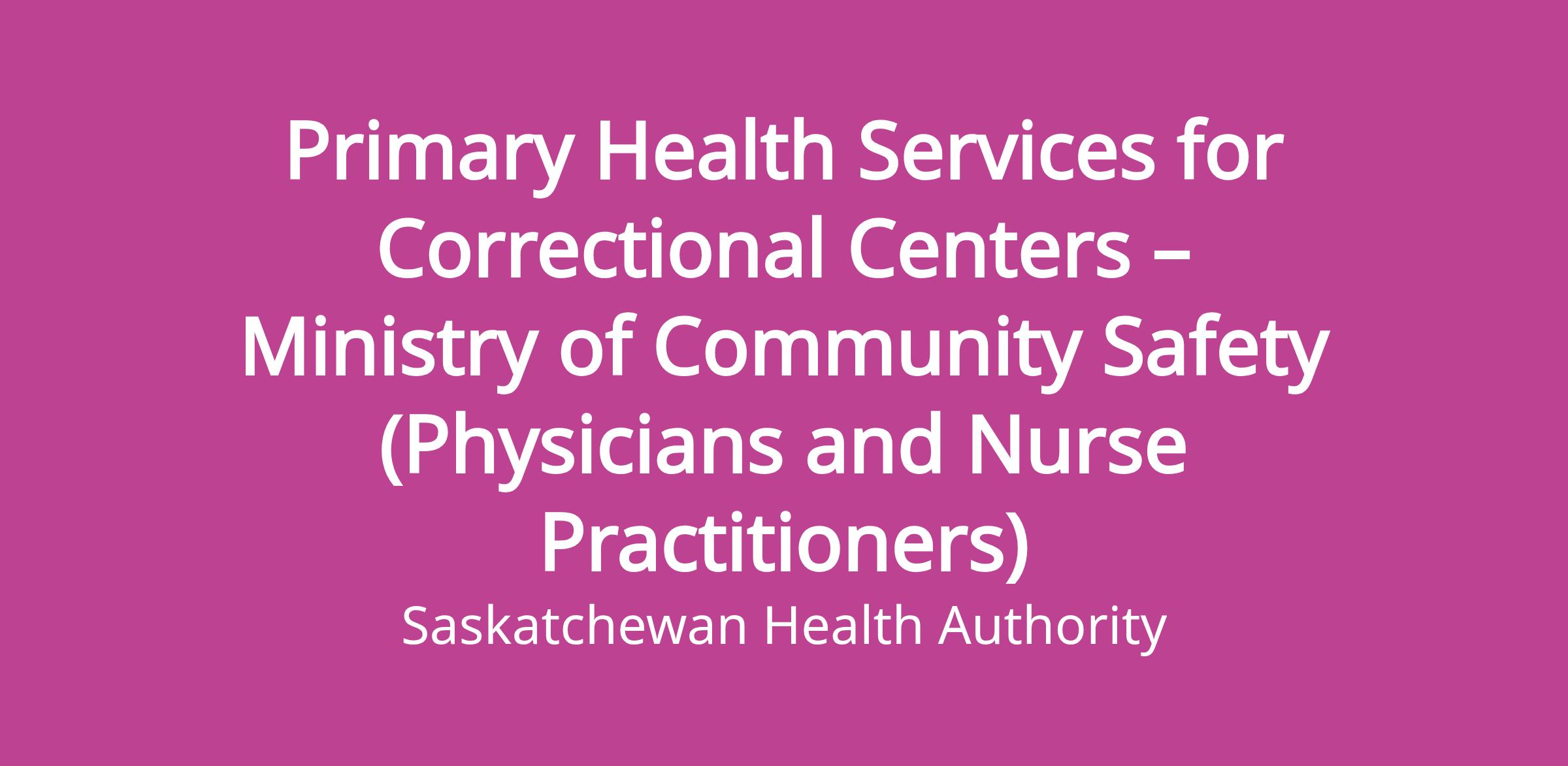 Position #: Primary Health Services for Correctional Centers – Ministry of Community Safety (Physicians and Nurse Practitioners)