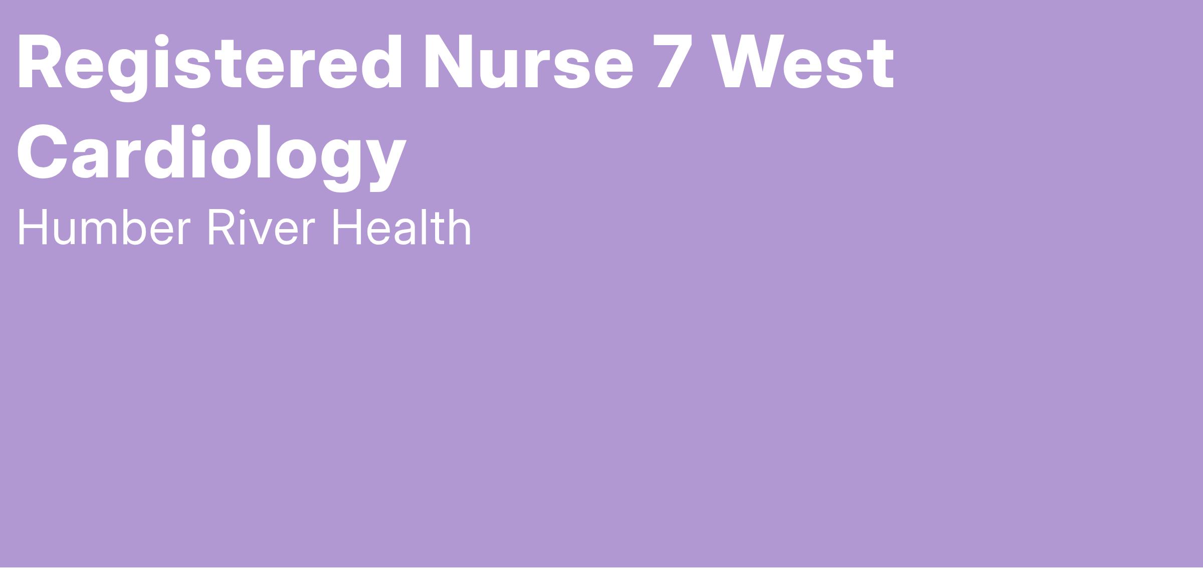 We currently have an exciting opportunity for a Registered Nurse to join our Cardiology team on our Inpatient Cardiology Unit