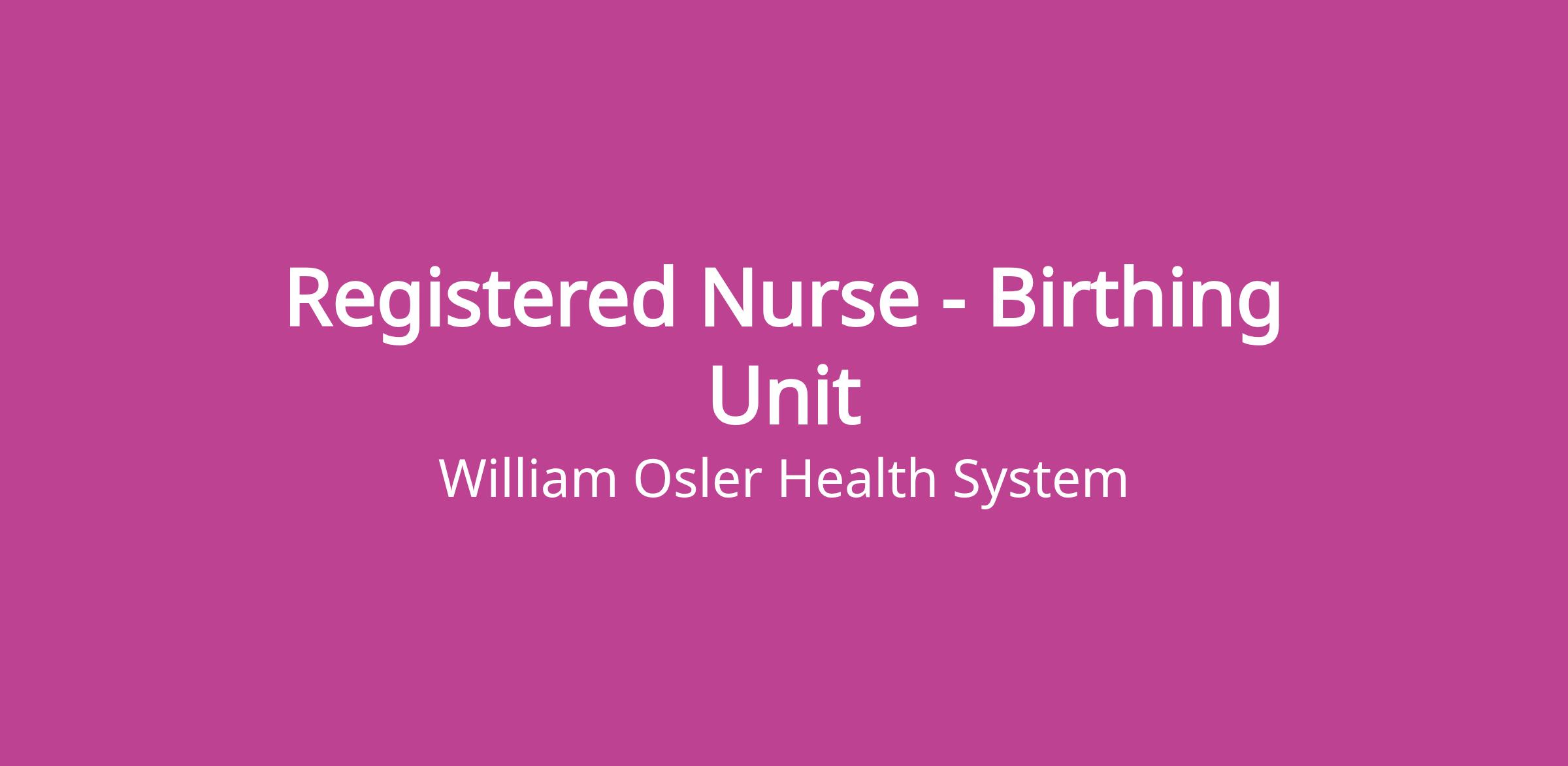 The Registered Nurse (RN) is a regulated health care professional who is accountable and responsible for providing quality patient focused nursing care to patients in the Birthing Unit. As part of the inter-professional health care team, the RN will practice according to the nursing practice expectations set by Osler, the regulatory practice standards of the College of Nurses and the legislative requirements set by the Regulated Health Professions Act.