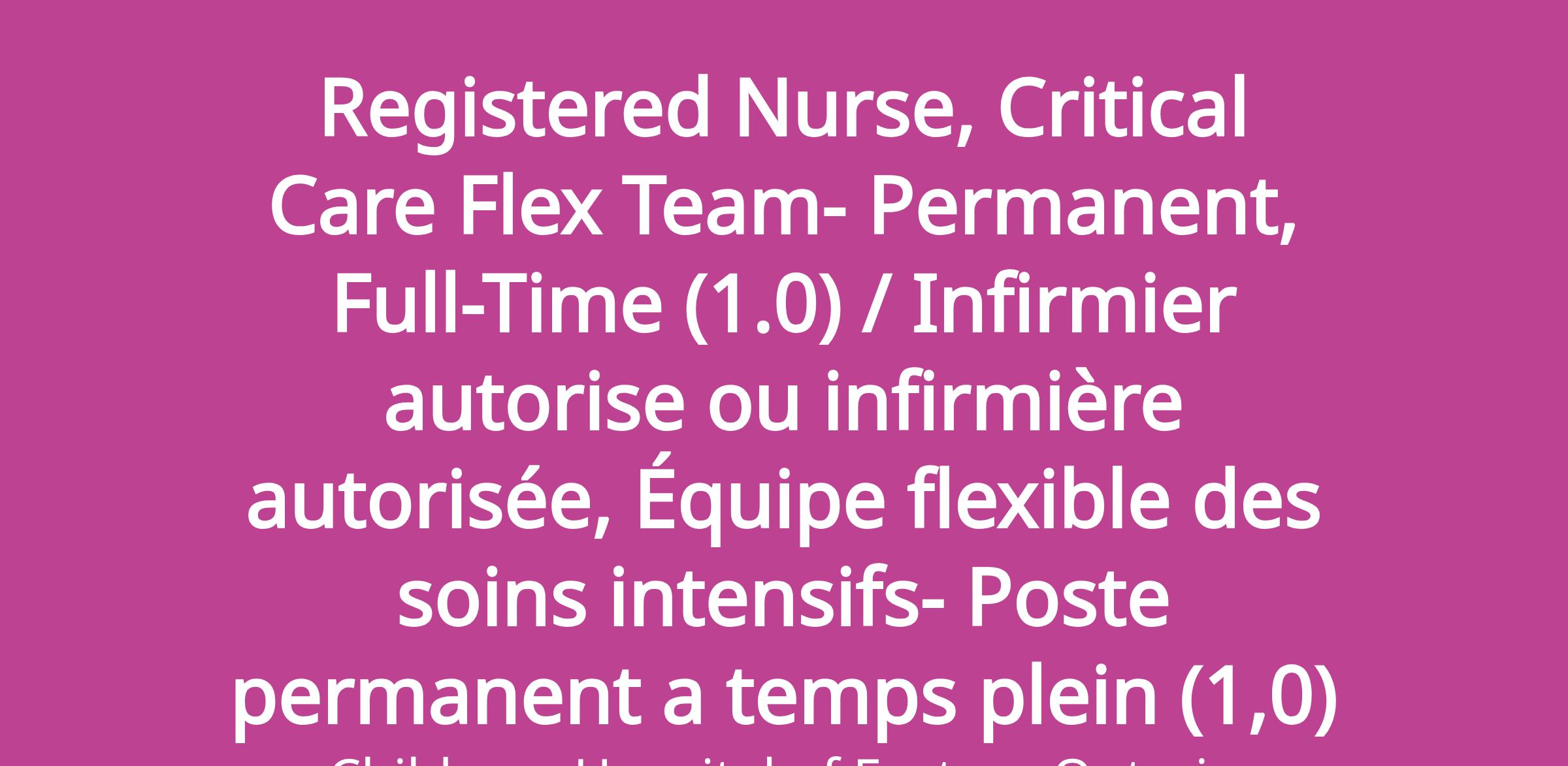 As a member of the Critical Care Flex Team, you will be trained in both NICU and PICU. CHEO provides an extensive orientation and support period to ensure a smooth transition in to practice on the unit.