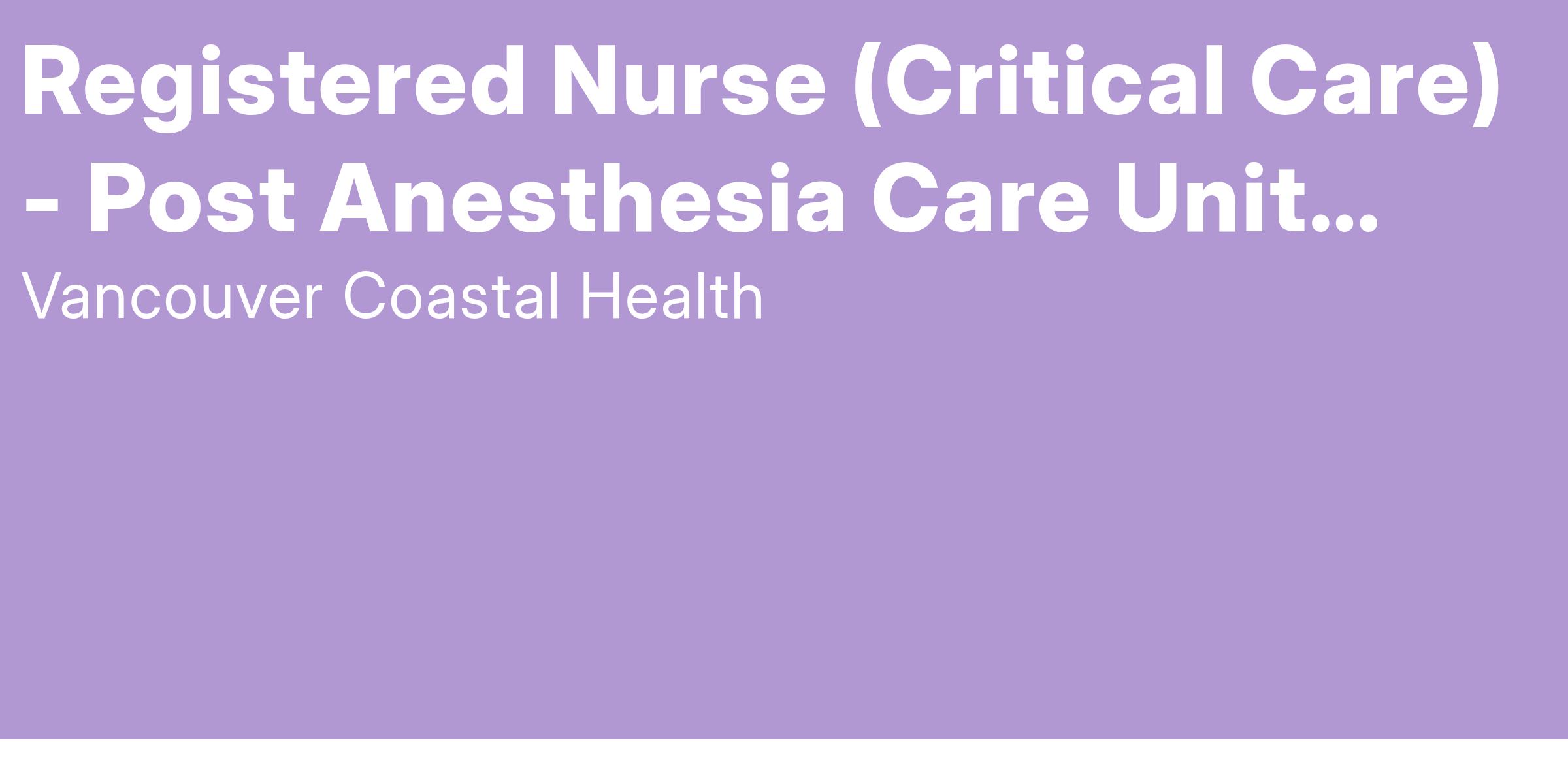 Vancouver Coastal Health (VCH) is looking for Registered Nurses to join the team in the Post Anesthesia Care Unit (PACU) at Richmond Hospital. Apply today to join our team!