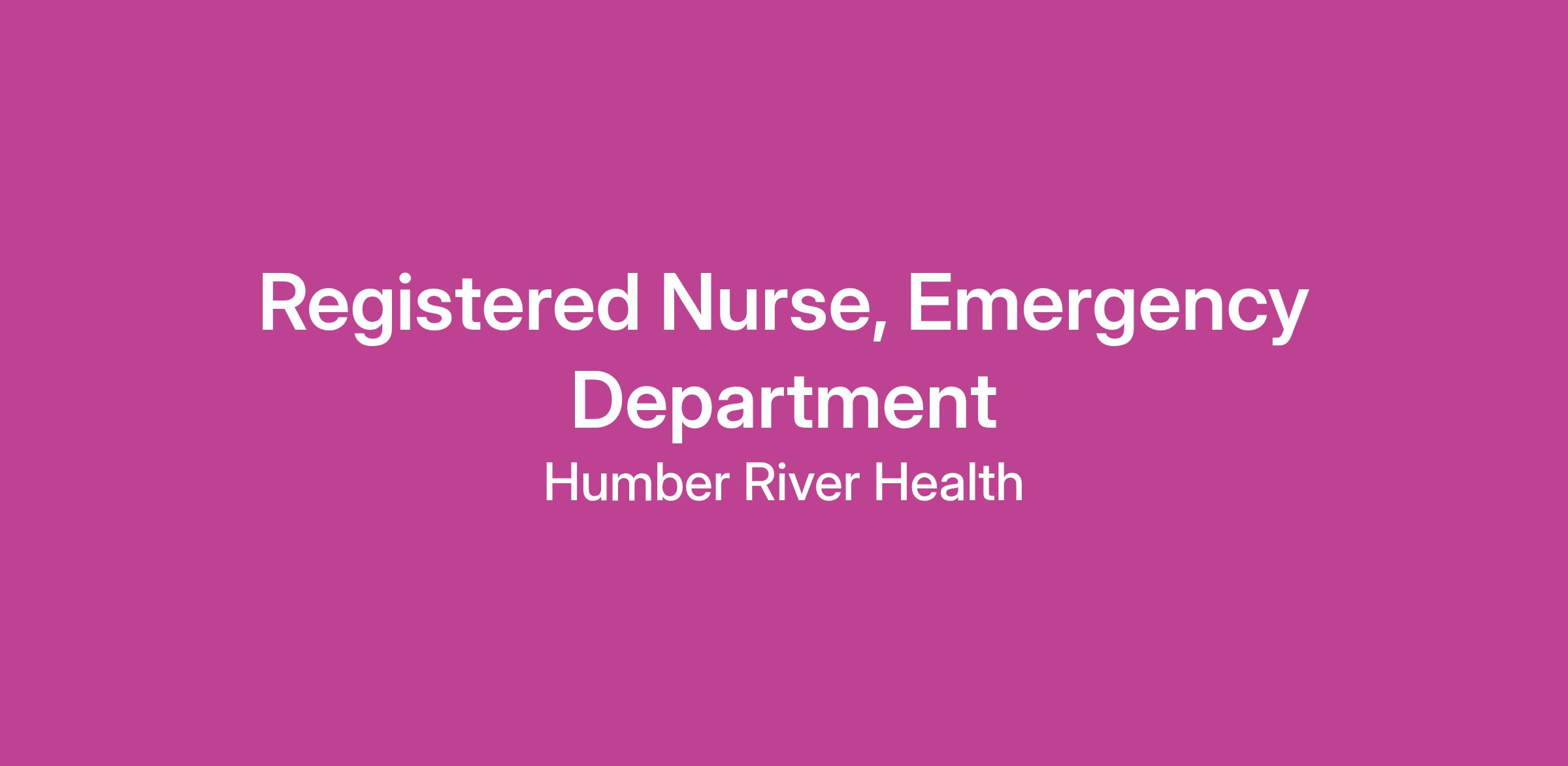 This position is being posted in response to an existing vacancy at Humber River Health.