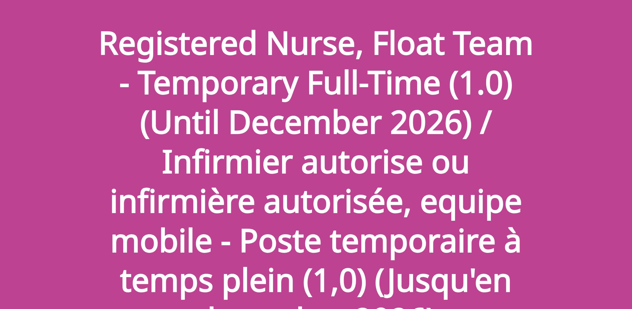 In keeping with CHEO’s mission statement, the Float Team nurse is responsible for assessing, planning, implementing and evaluating nursing care for individual patients/families. Working for the Float Team is an opportunity to develop a broad range of pediatric skills. Float Team members may be assigned to cover “just in time” needs or longer-term vacancies throughout the hospital. The Float Team nurse practices according to the standards of practice of the College of Nurses of Ontario and in compliance with CHEO’s policies and procedures.