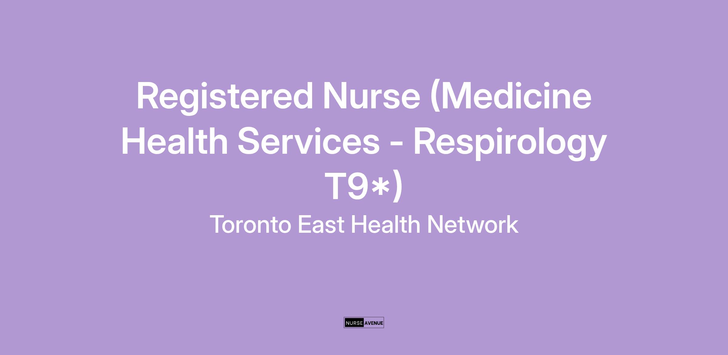 Registered Nurse (Medicine Health Services - Respirology T9*)