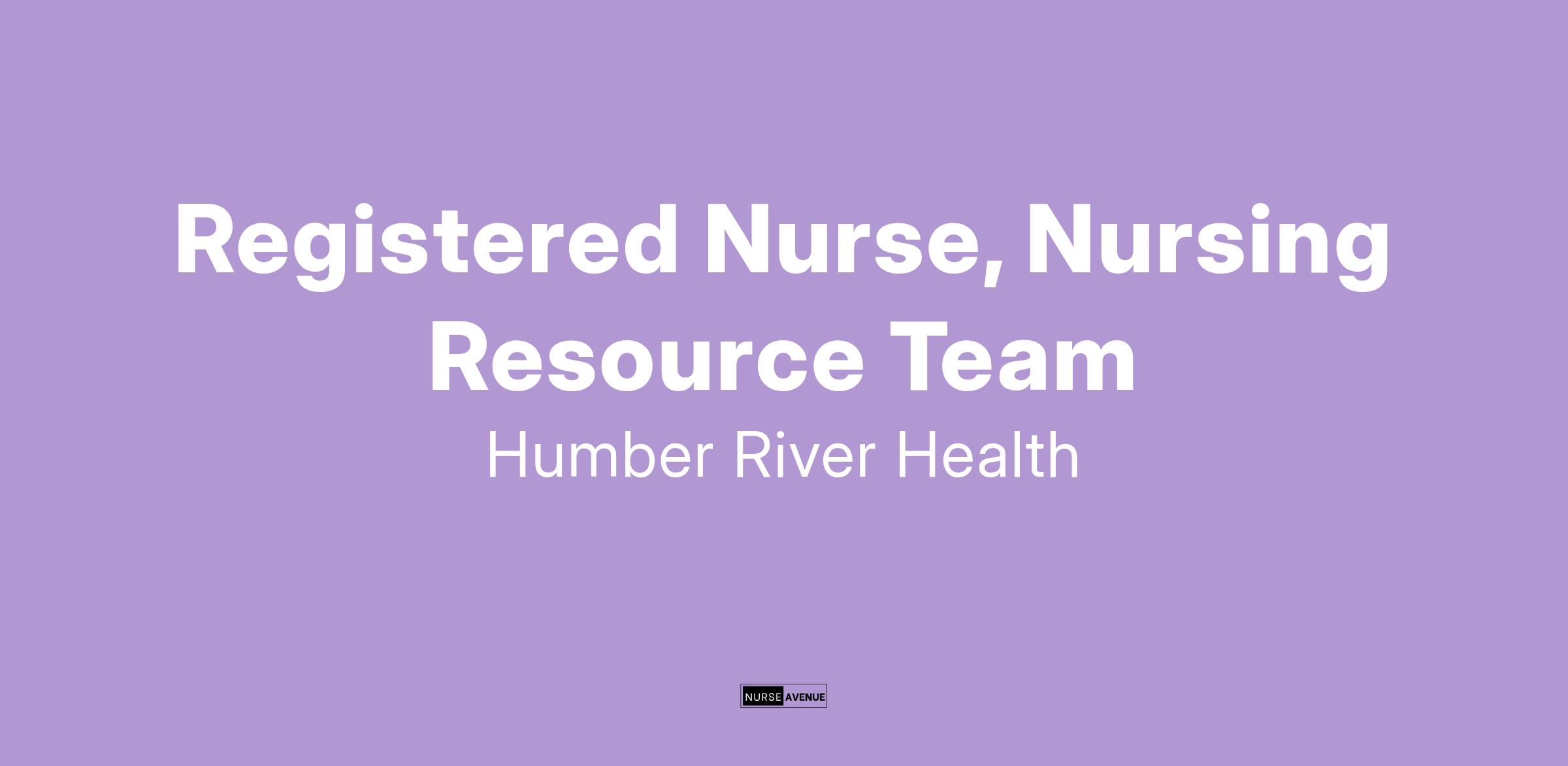 Humber River Health's Nursing Resources Team is part of the Staffing Resource Centre within the Hospital. The Registered Nurses within the Nursing Resources Team are trained to cover all Medicine and Surgical Inpatient Units. Members of the Nursing Resource Team have the opportunity to be trained in specialty areas when needed.