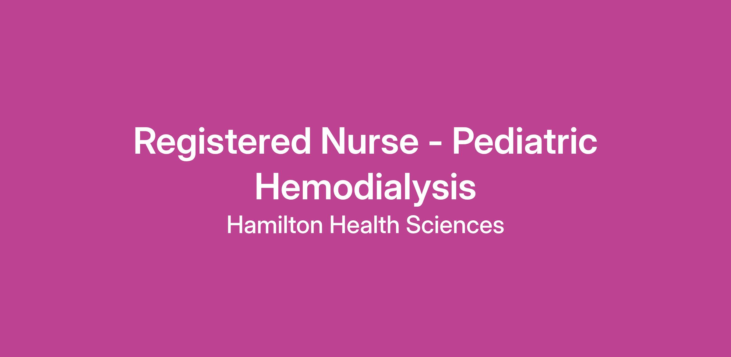 The primary focus of this Registered Nurse (RN) role is to provide hemodialysis, peritoneal dialysis treatments, and nursing care to pediatric hemodialysis and nephrology patients in a variety of settings. As a member of the interdisciplinary team, the RN will be involved in both direct and indirect care of children who require hemodialysis. This will include assessment and implementation of patient care plans in the inpatient and outpatient settings. As a member of the interdisciplinary health care team, the RN uses clinical expertise and knowledge of children and families, disease processes and related issues to plan patient care and evaluate clinical practice across the continuum of care.