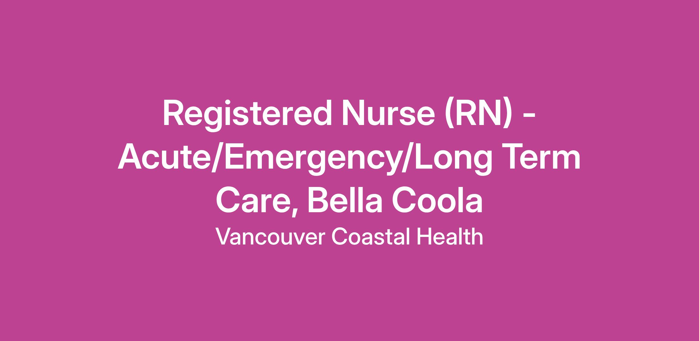 Come work as a Registered Nurse with Vancouver Coastal Health (VCH) in Bella Coola, BC! Relocation Assistance and Staff housing may be available.