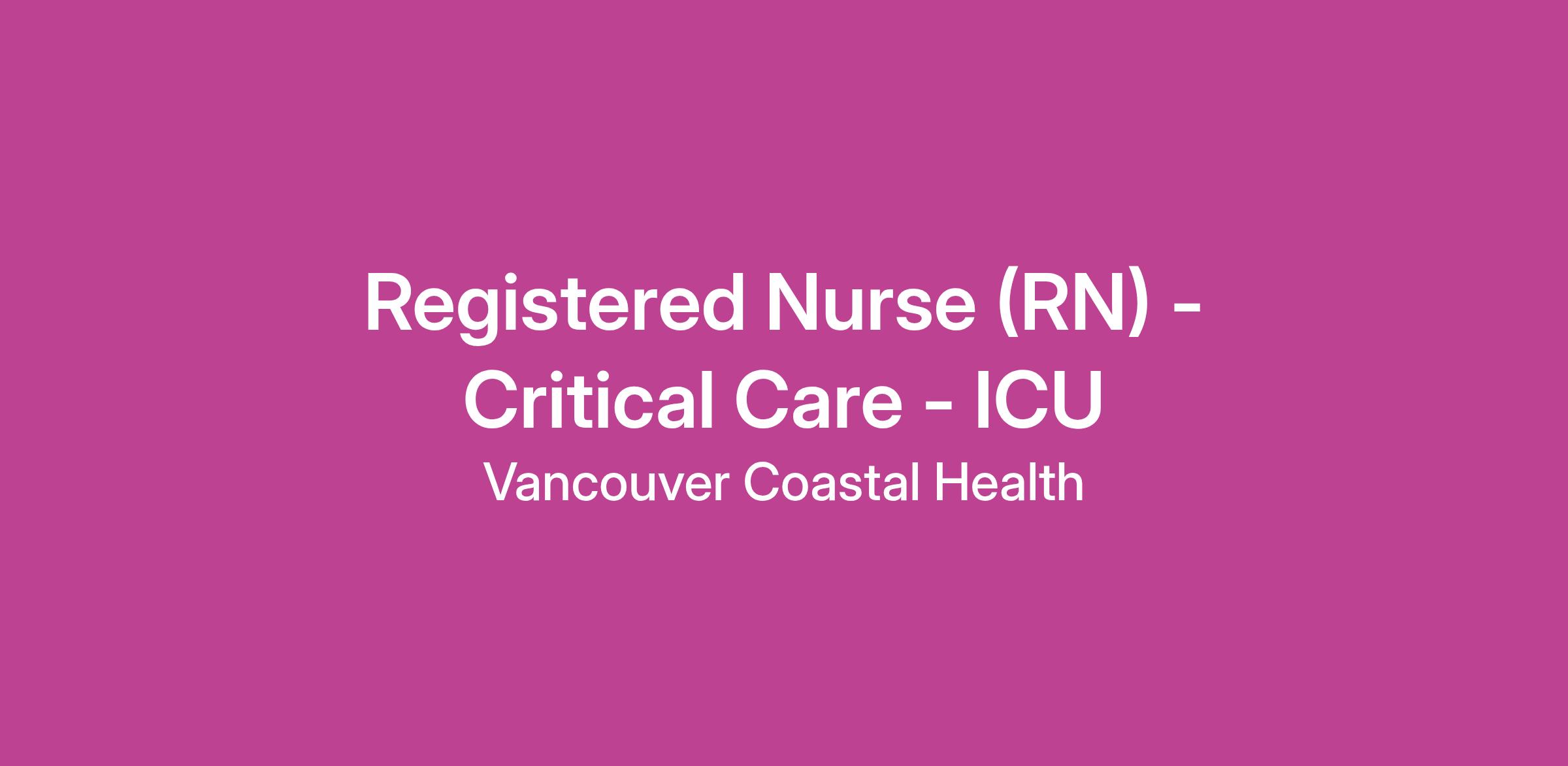 Come work as a Registered Nurse in the Intensive Care Unit with Vancouver Coastal Health (VCH)!