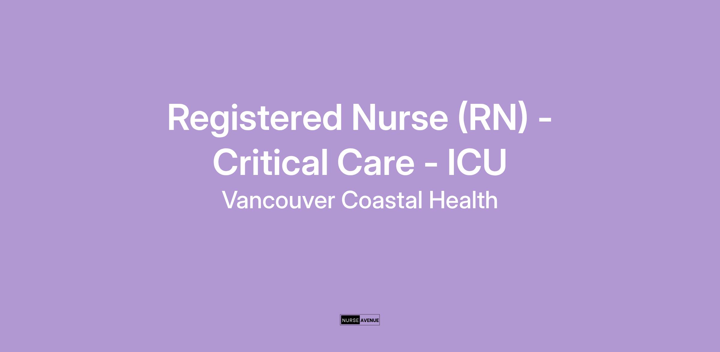 Come work as a Registered Nurse with Vancouver Coastal Health (VCH)!