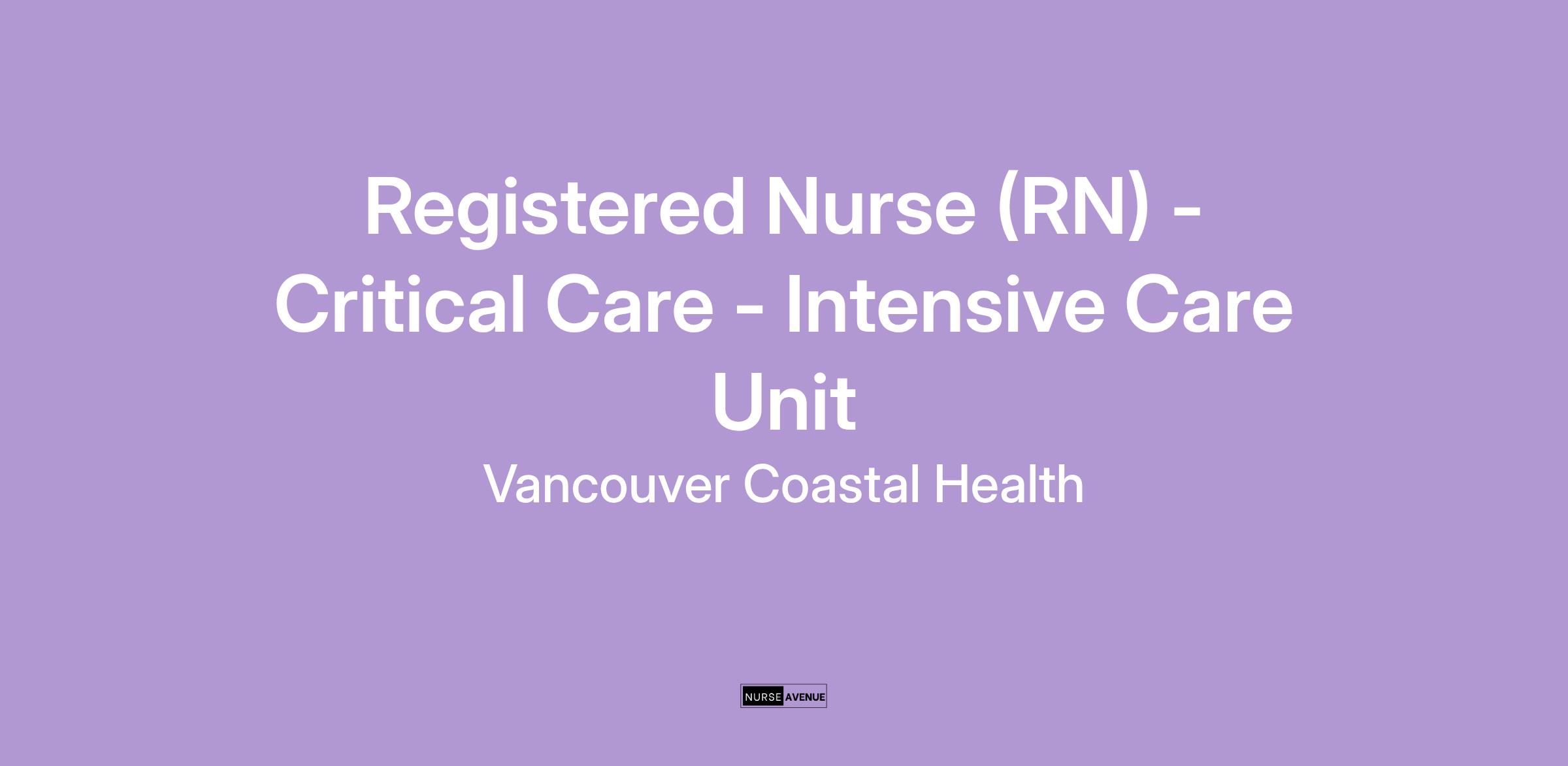 Come work as a Registered Nurse in the Intensive Care Unit with Vancouver Coastal Health (VCH)!