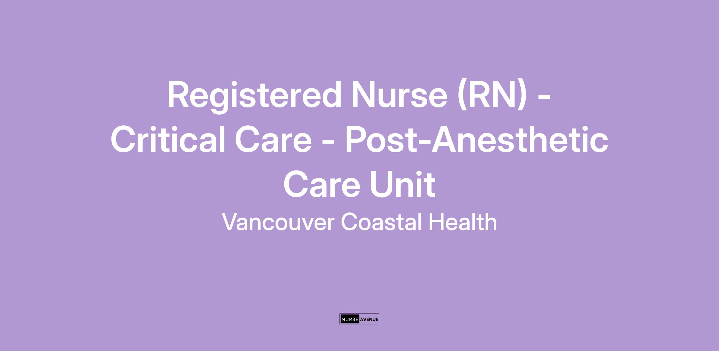 Come work as a Registered Nurse in the Post Anesthesia Recovery Unit with Vancouver Coastal Health (VCH)!