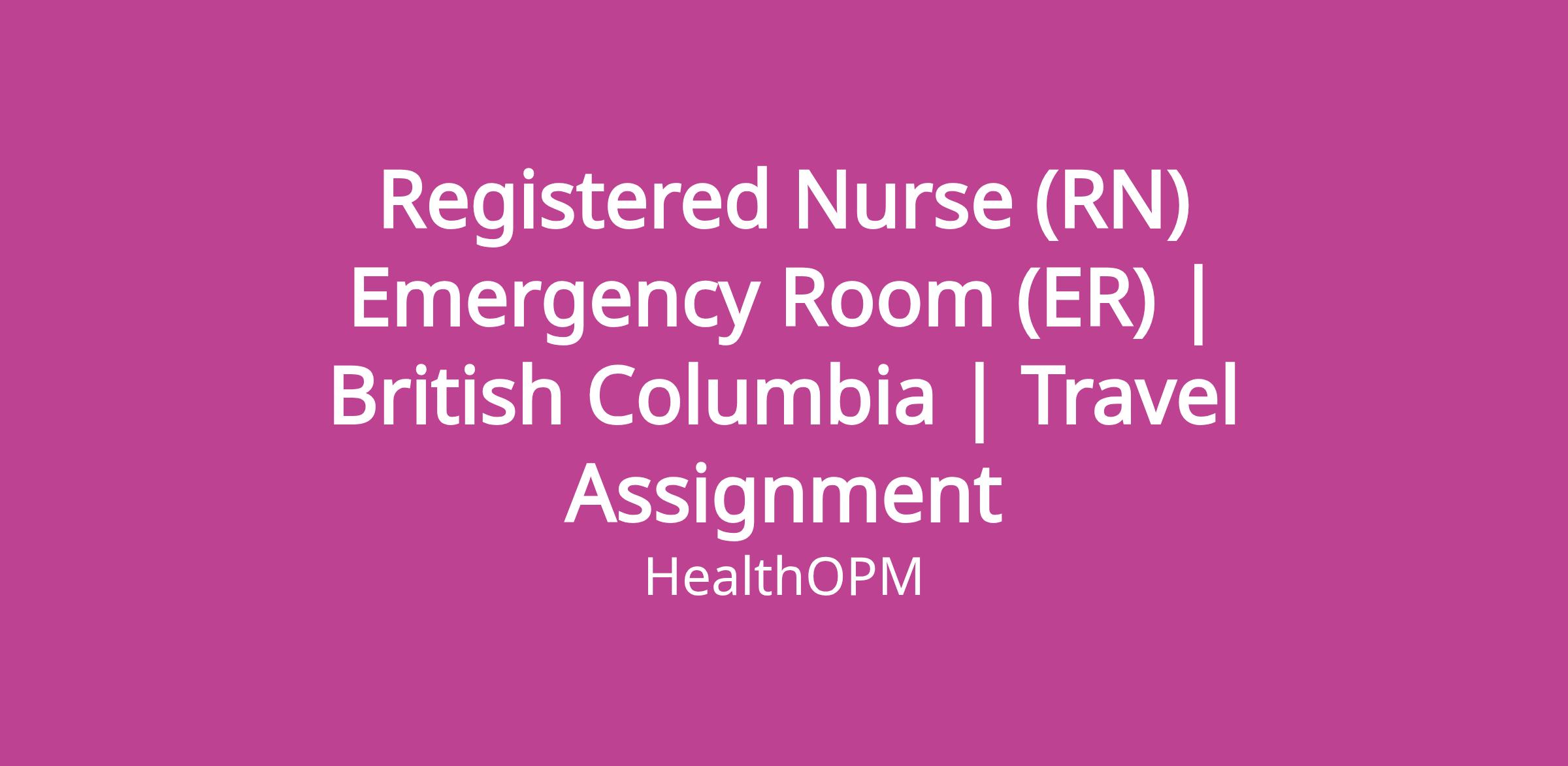 HealthOPM is hiring Registered Nurses (RNs) for Emergency Room (ER) travel contracts in British Columbia, and nearby Fraser Health communities. This role offers the chance to work in a fast-paced hospital environment with full support for housing, travel, and relocation.
