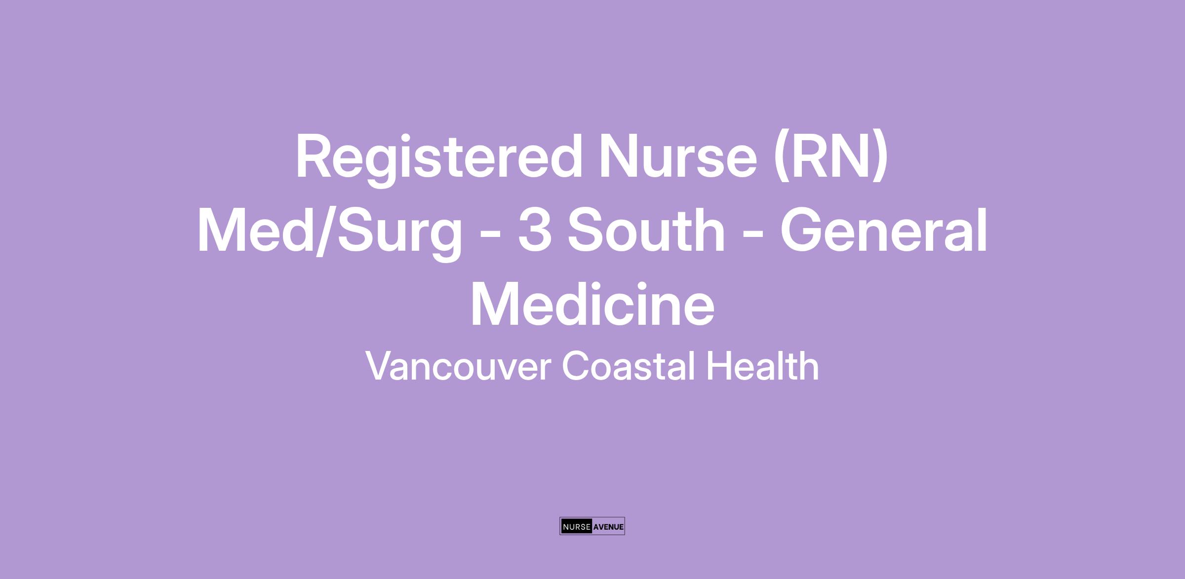 Come work as a Registered Nurse with Vancouver Coastal Health (VCH)!