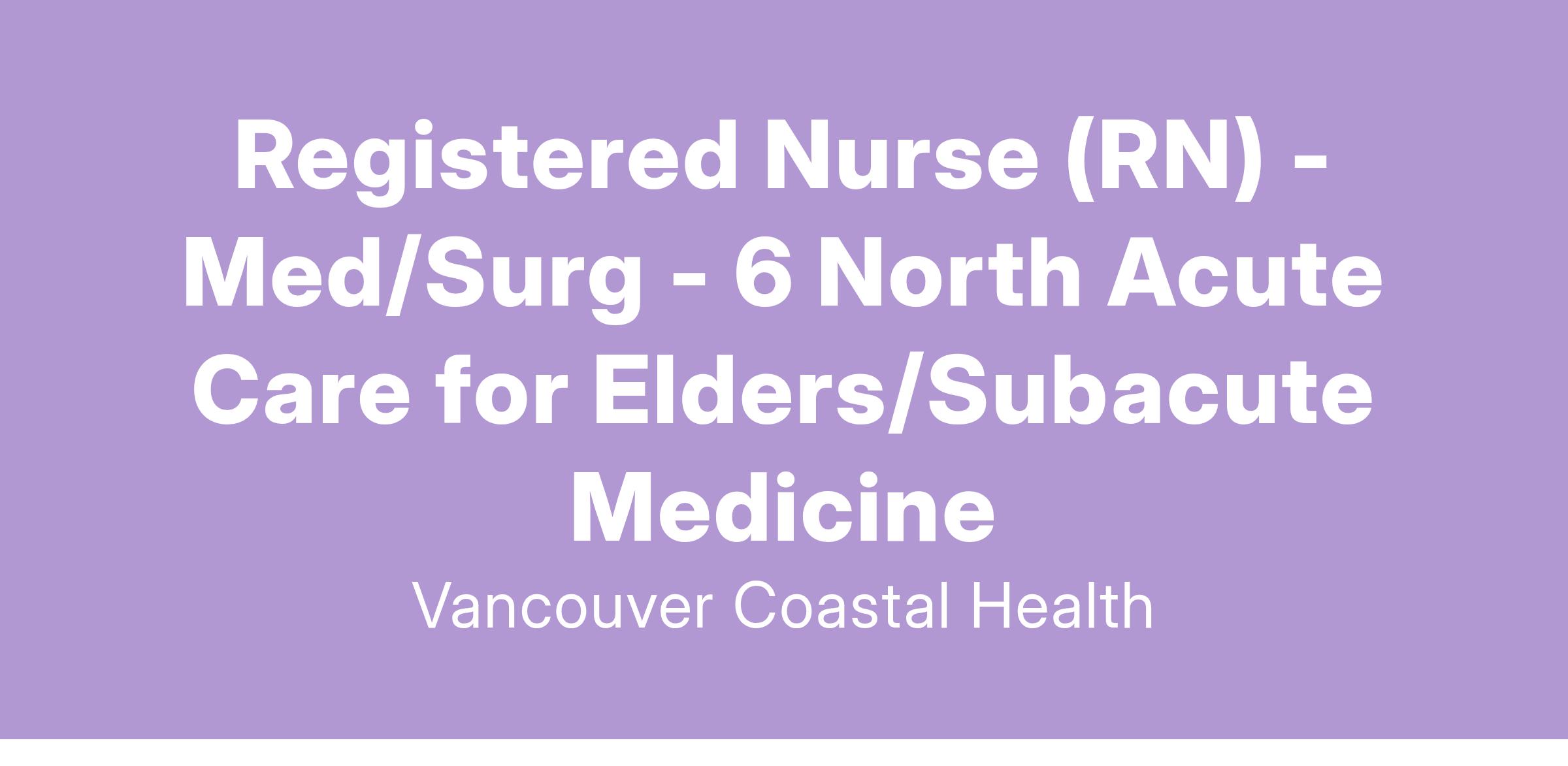 Come work as a Registered Nurse in Acute Care for Elders (ACE) with Vancouver Coastal Health (VCH)!