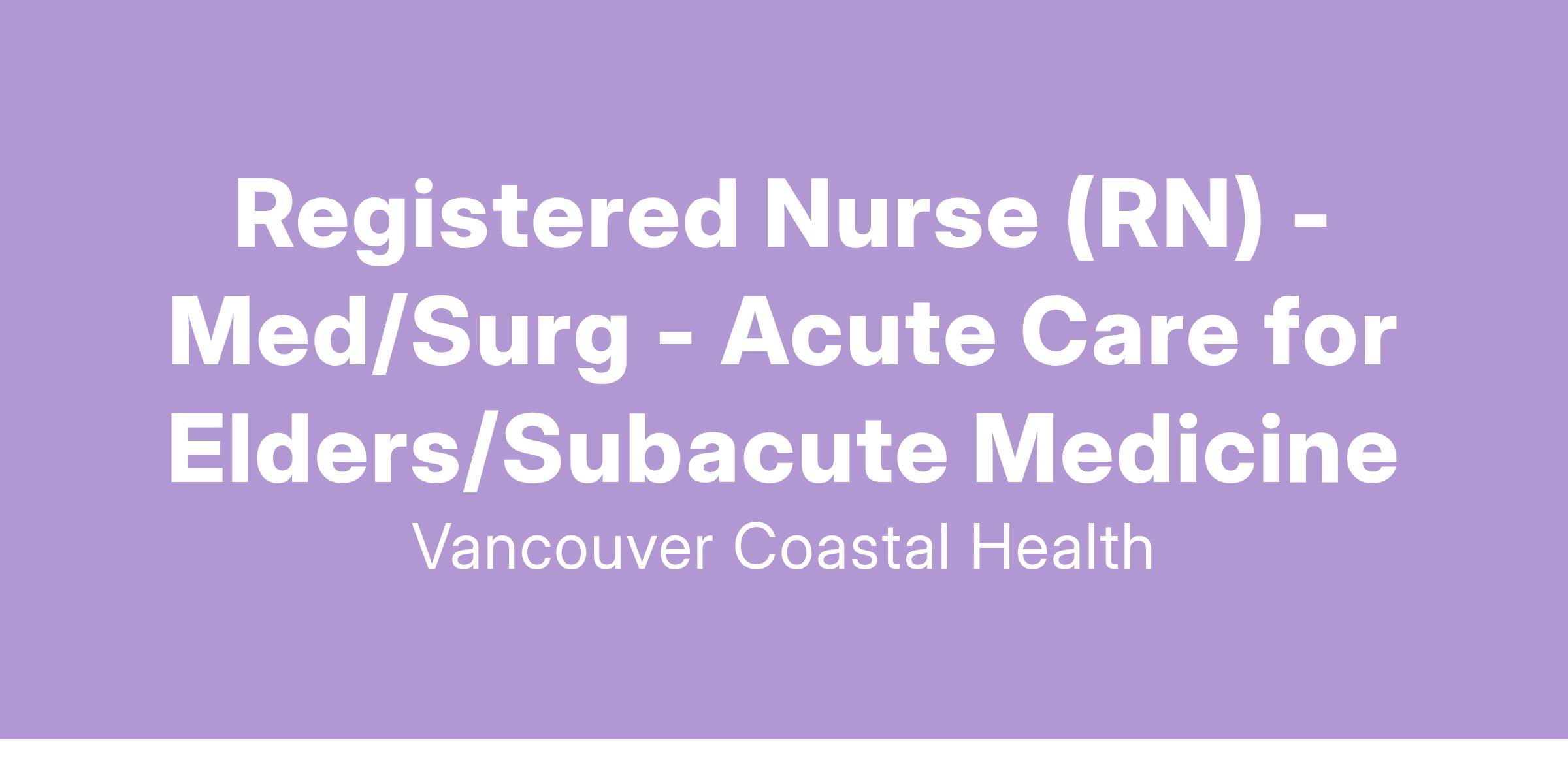 Come work as an Registered Nurse in Acute Care for Elders (ACE) with Vancouver Coastal Health (VCH)!