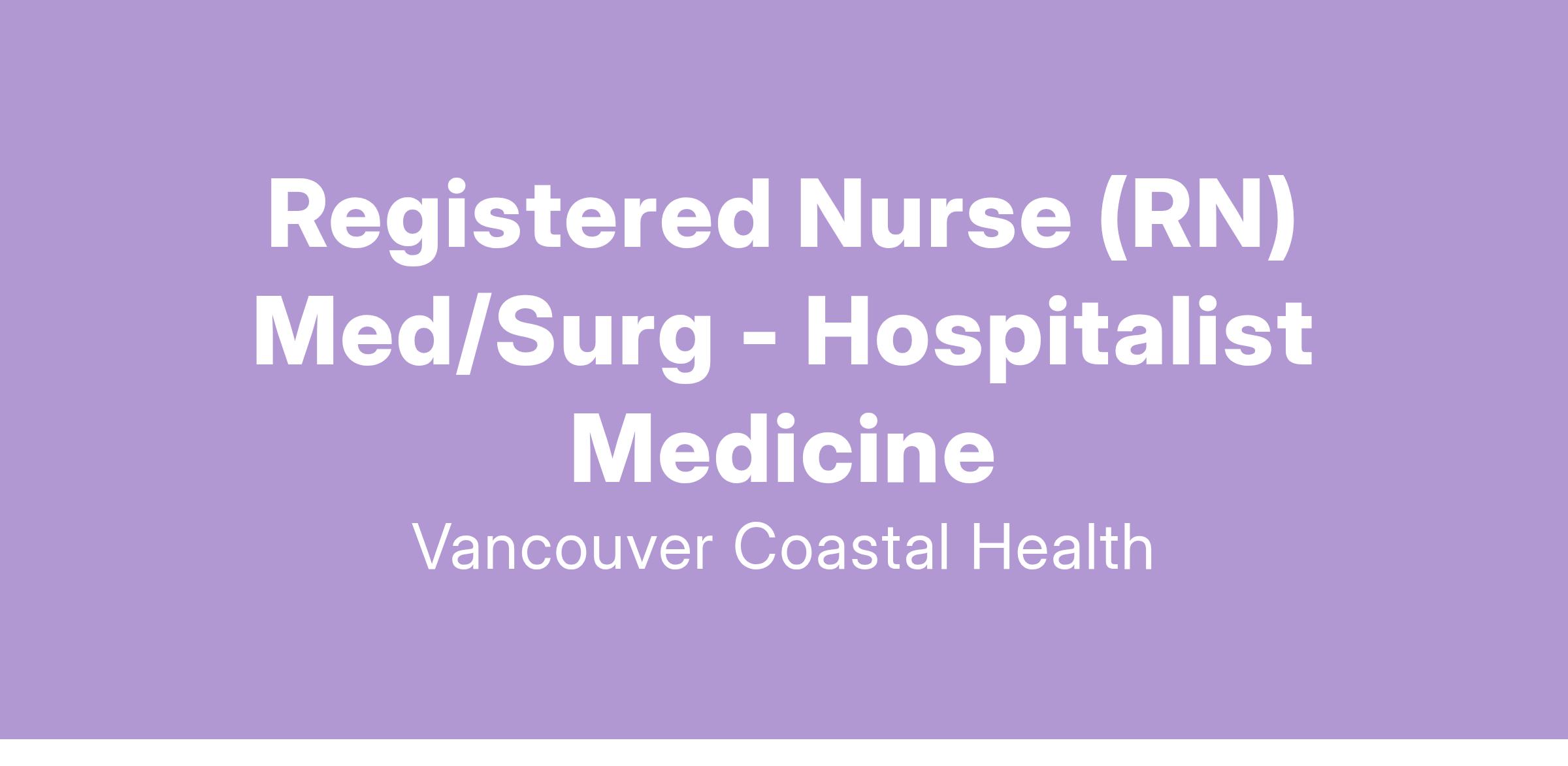 Vancouver Coastal Health (VCH) is looking for a Registered Nurse (RN) to join the team at the Hospitalist Medicine unit at Vancouver General Hospital. Apply today to join our team!Ā