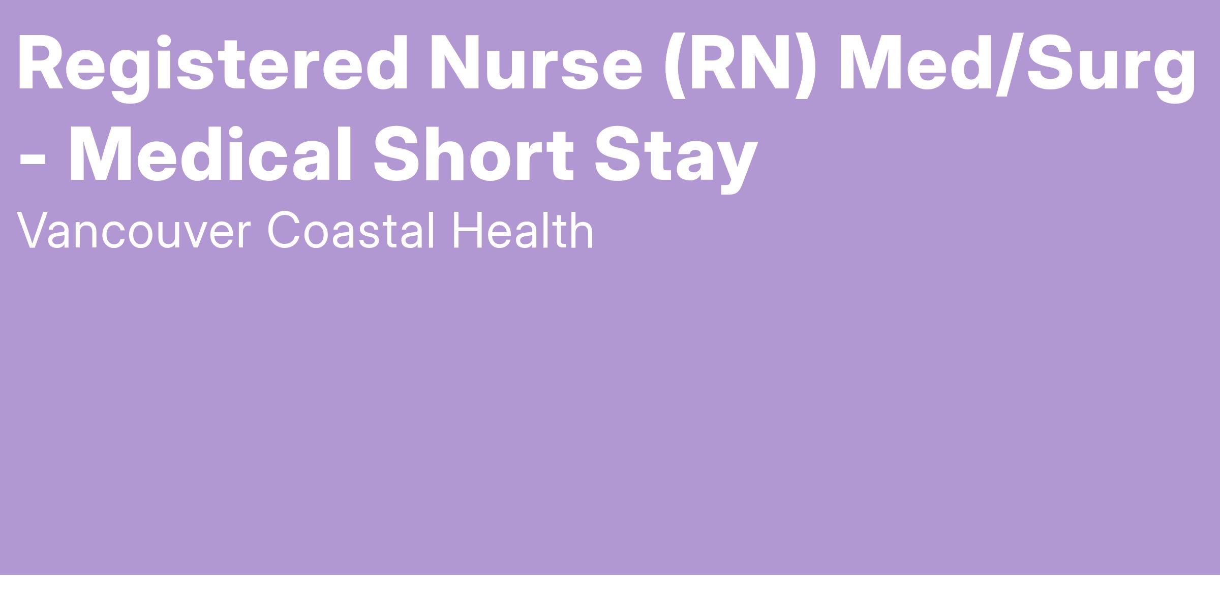 Vancouver Coastal Health (VCH) is looking for a Registered Nurse to join the Medical Short Stay Unit at Richmond Hospital in Richmond, BC. Apply today to join our team!