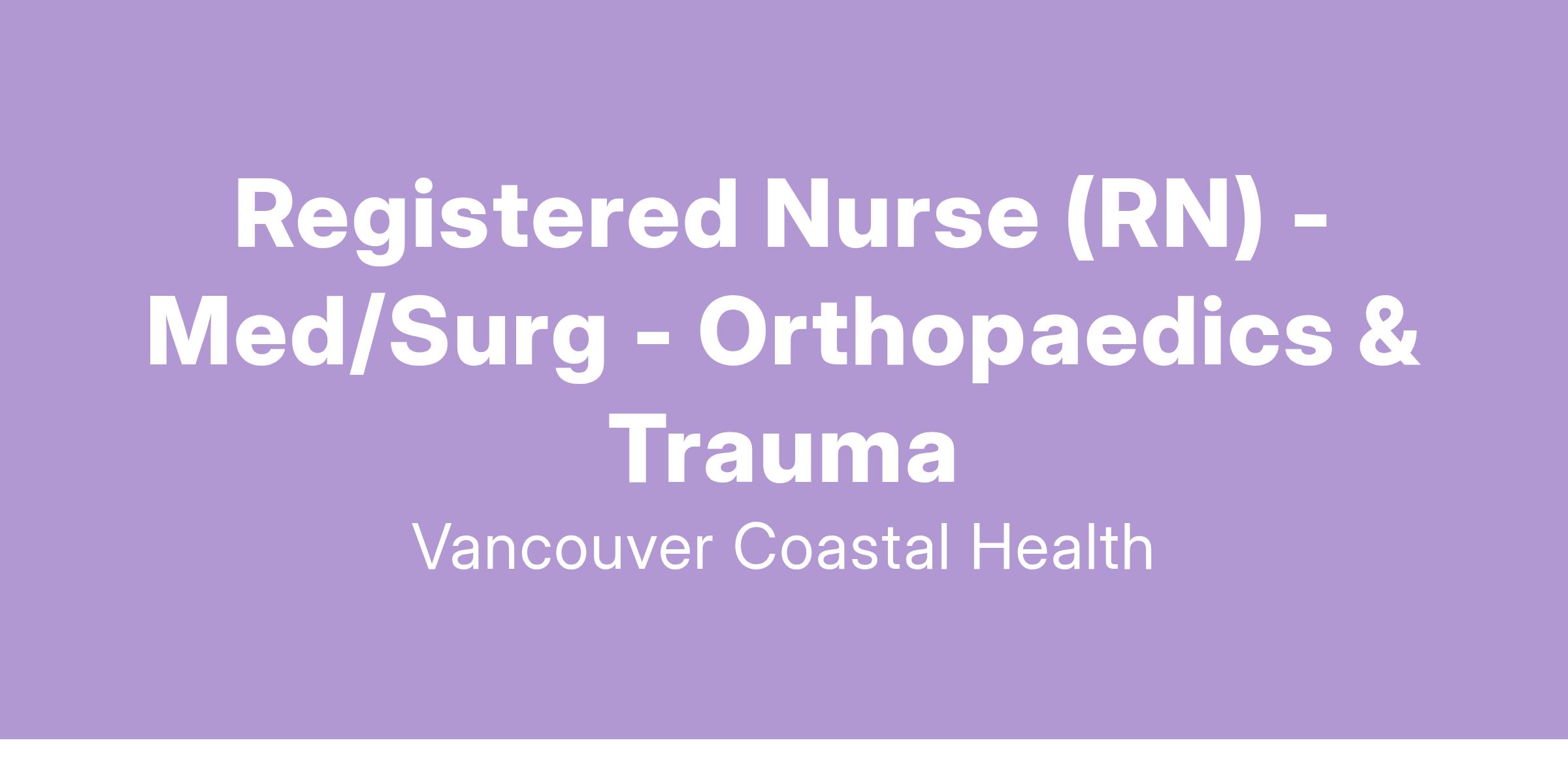 Vancouver Coastal Health is looking for a Registered Nurse to join the Orthopaedics & Trauma team at Vancouver General Hospital. Apply today to join our team!