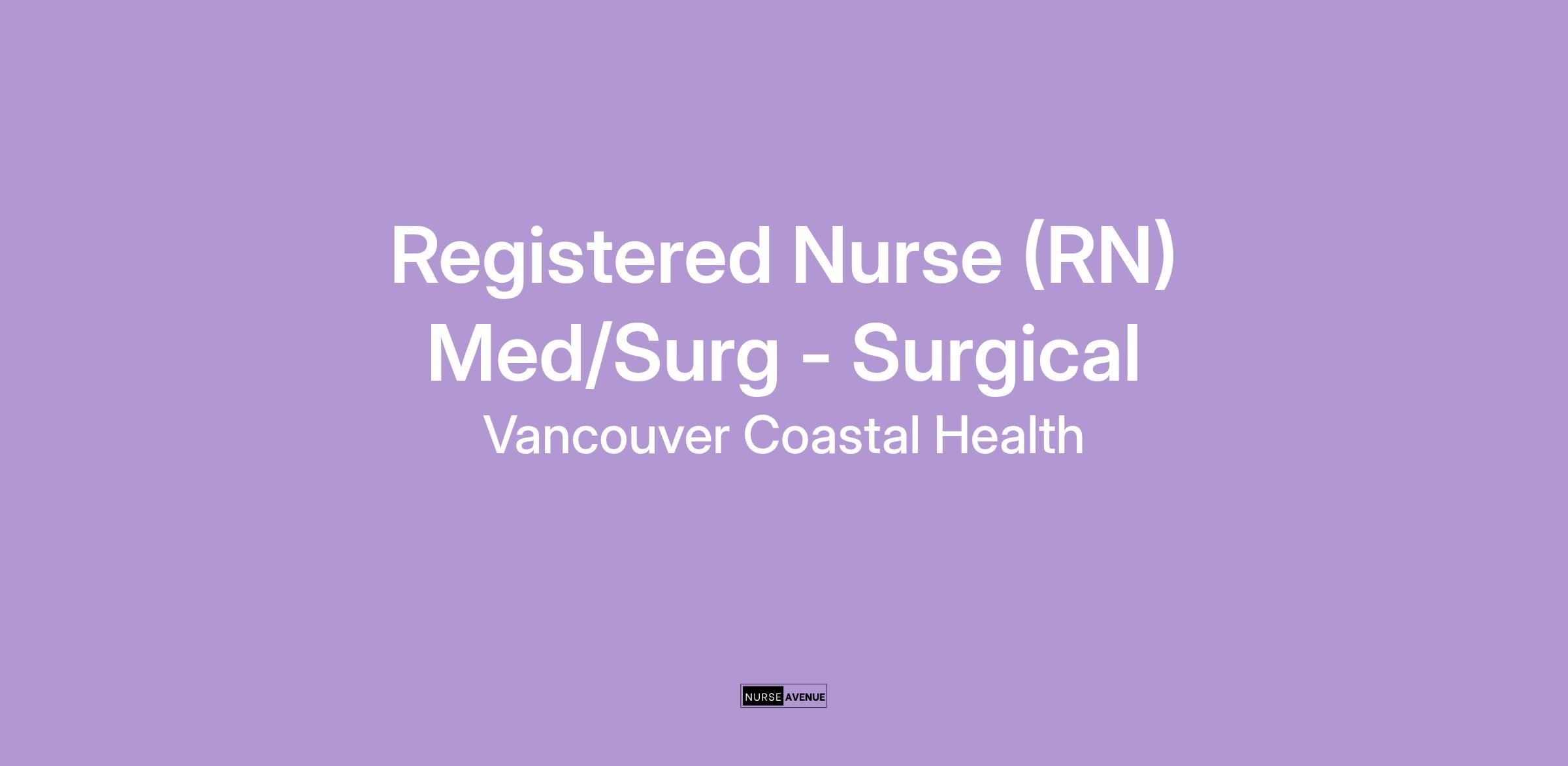 Come work as a Registered Nurse with Vancouver Coastal Health (VCH)!