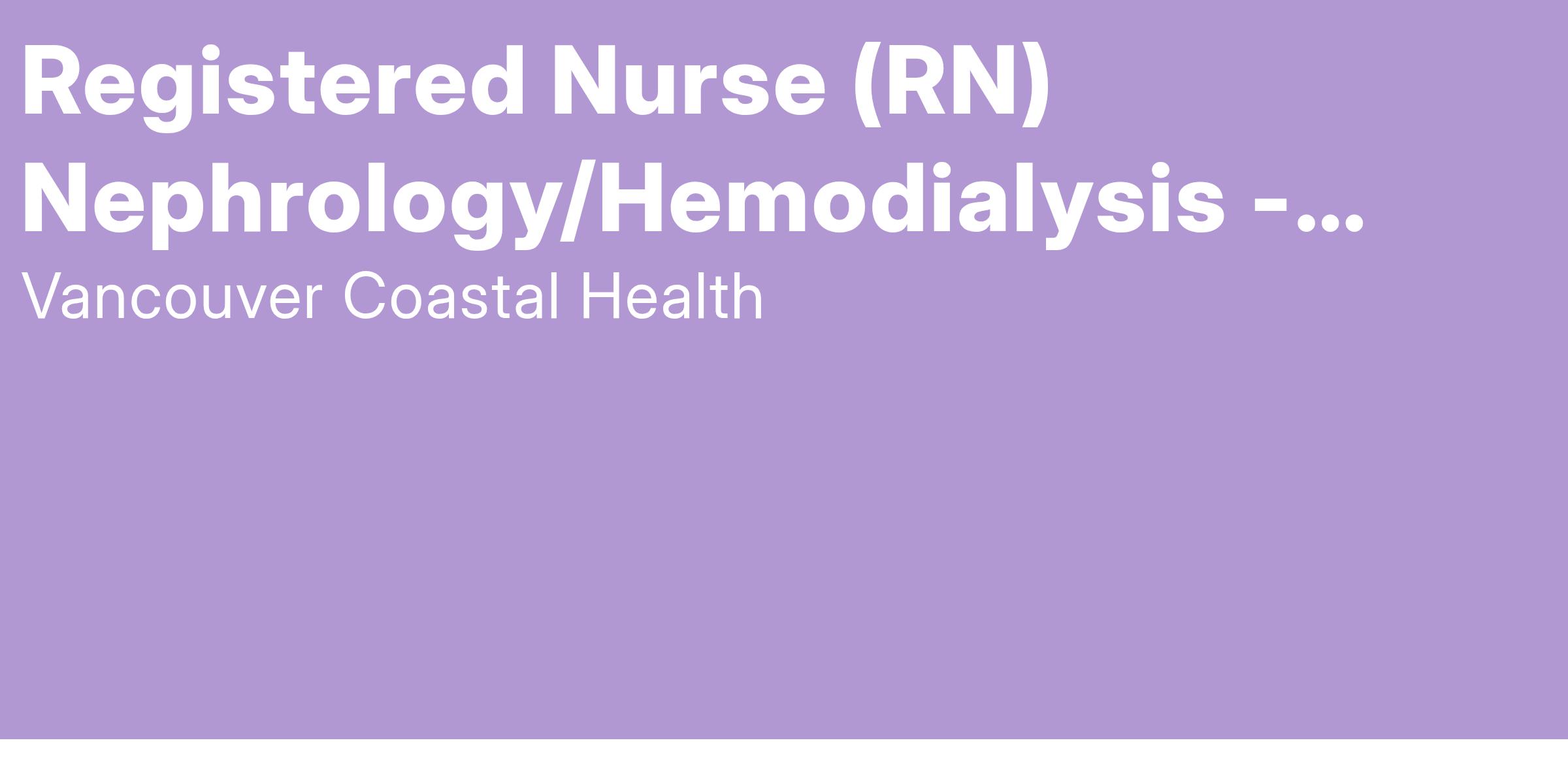 Registered Nurse Education Opportunity - Hemodialysis/Nephrology (Squamish) | Providence Health Care