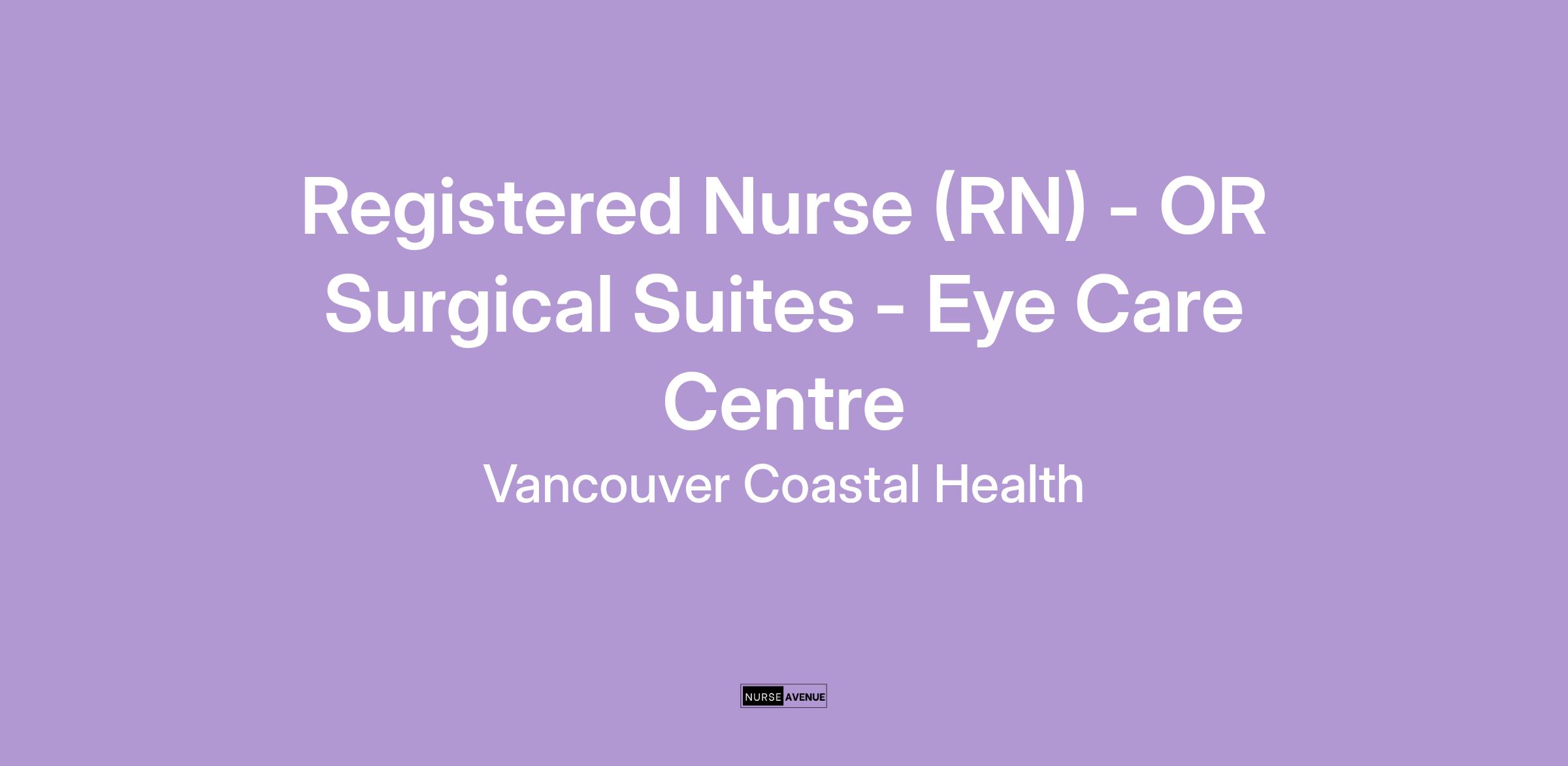 Vancouver Coastal Health is looking for a Registered Nurse to join the Eye Care Centre Surgical Suite at Vancouver General Hospital. Apply today to join our team!