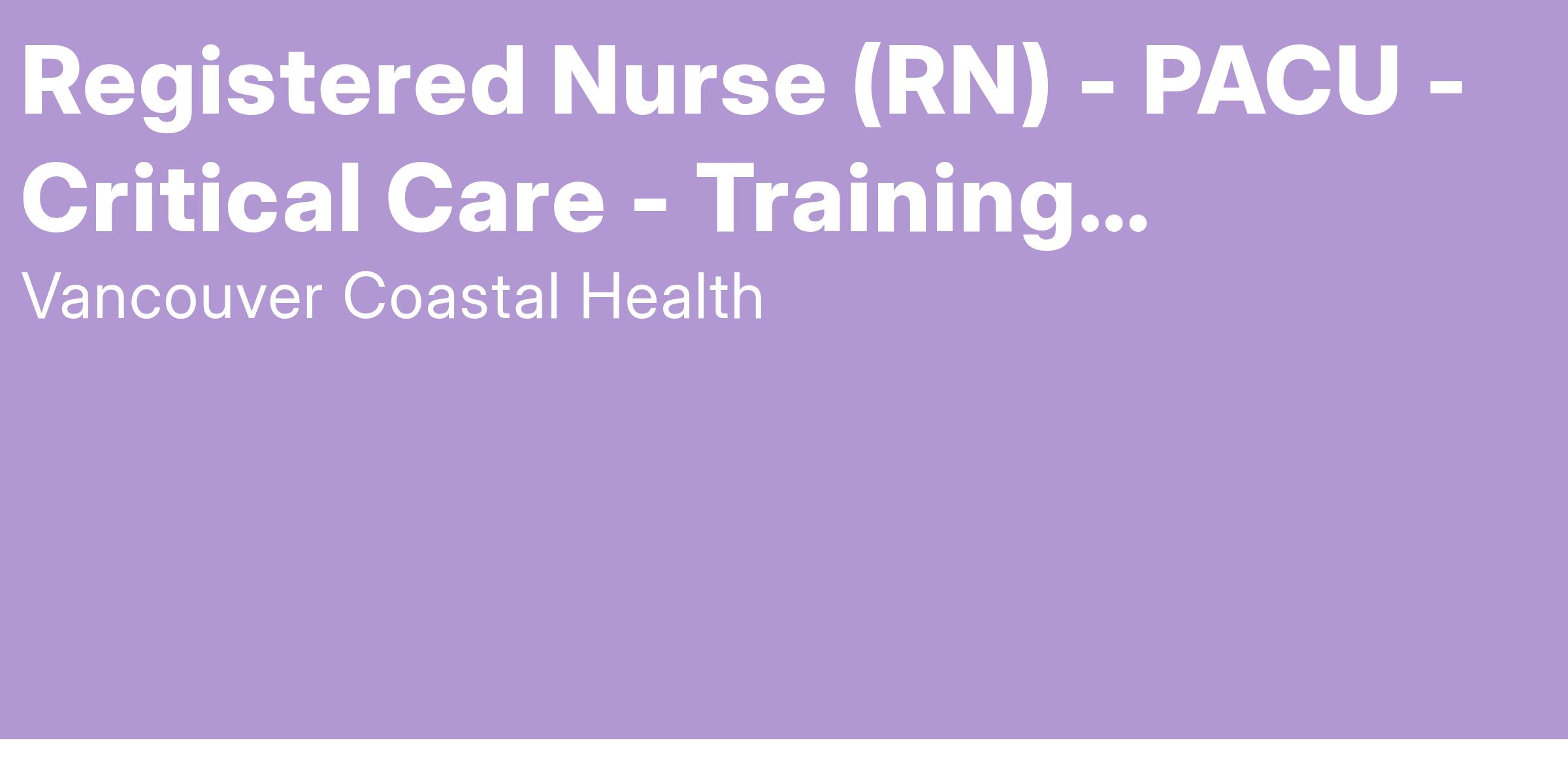 Candidates accepting this training opportunity agree to remain with Vancouver Coastal Health (VCH) as a regular status nurse in the area of nursing applicable to the education program for which they are hired for at least 18 months subsequent to completing training.