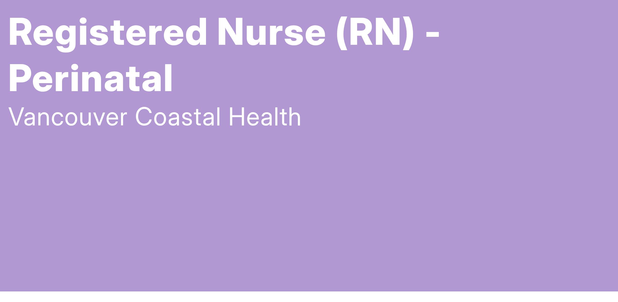 Come work as a Registered Nurse with Vancouver Coastal Health (VCH)!