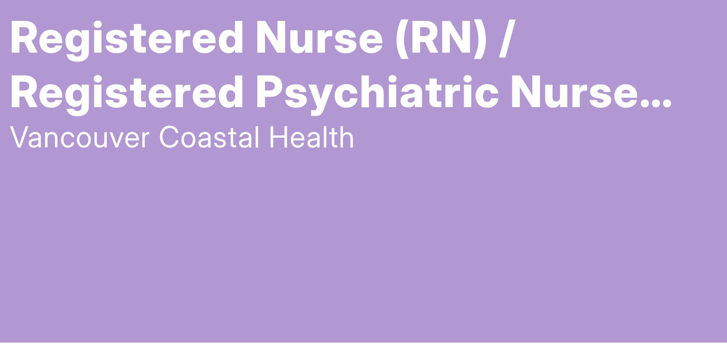 Come work as a Registered Nurse with Vancouver Coastal Health (VCH)!