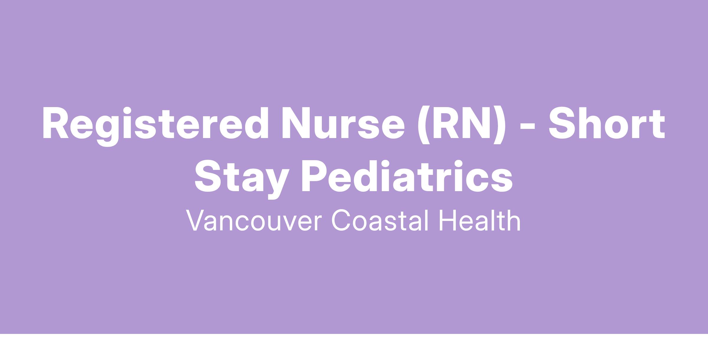 Vancouver Coastal Health is looking for a Registered Nurse with training or experience in Pediatrics to join the Short Stay Pediatric Unit at Richmond Hospital. Apply today to join our team!