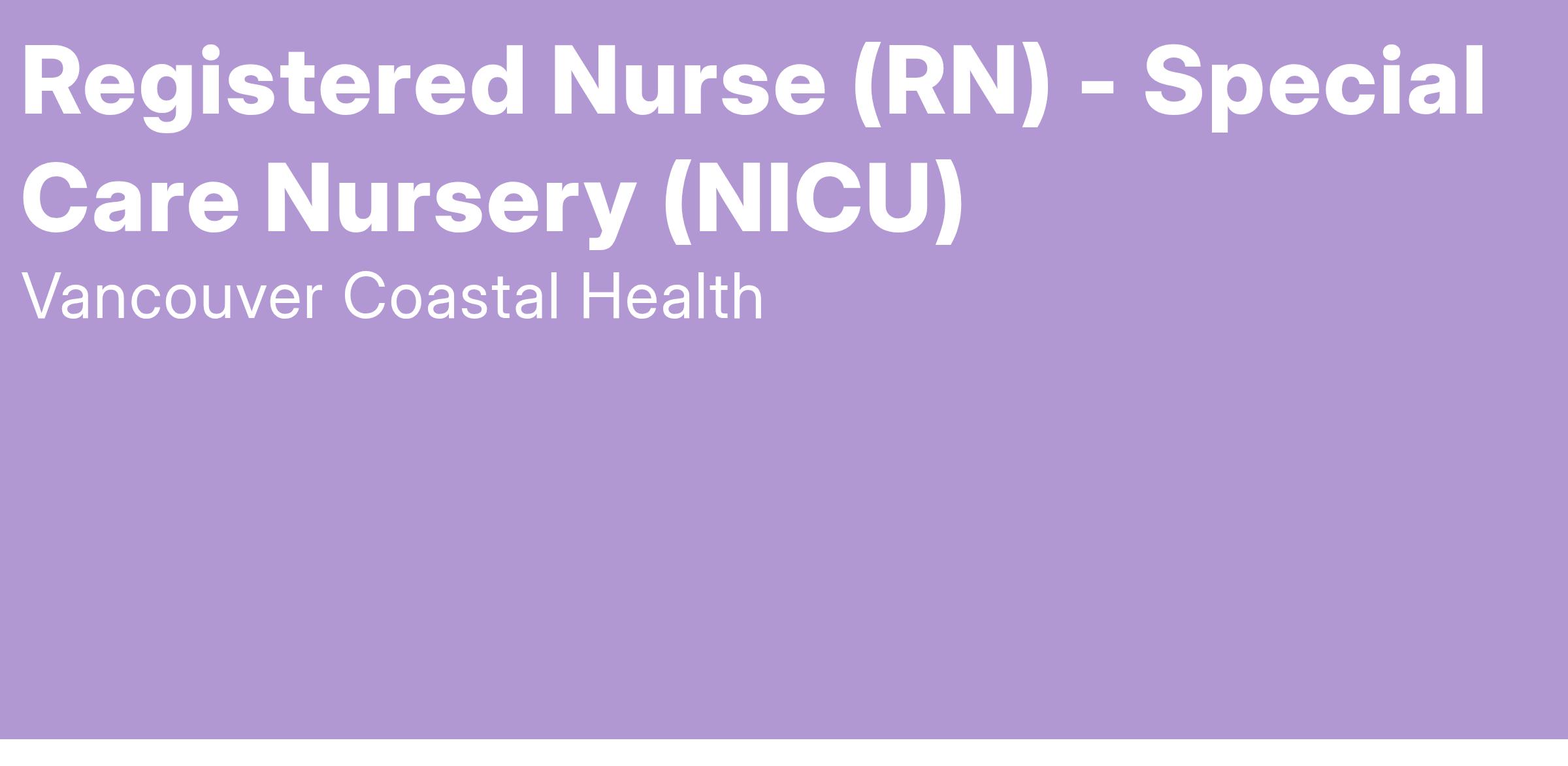 Vancouver Coastal Health is looking for a Registered Nurse to join the team in the Neonatal Intensive Care Unit (NICU) at Lions Gate Hospital in North Vancouver, BC.Β Apply today to join our team!