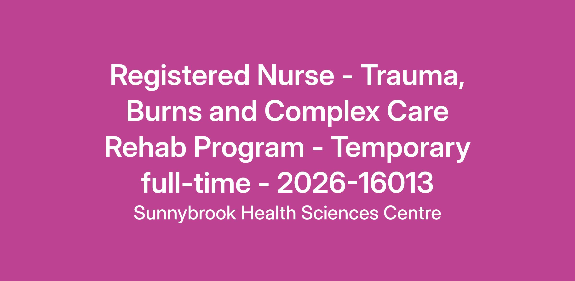 Previous experience in Trauma, Burns and Complex Care Rehab Program (A2) Rehab Programs preferred. Specialty certification an asset.