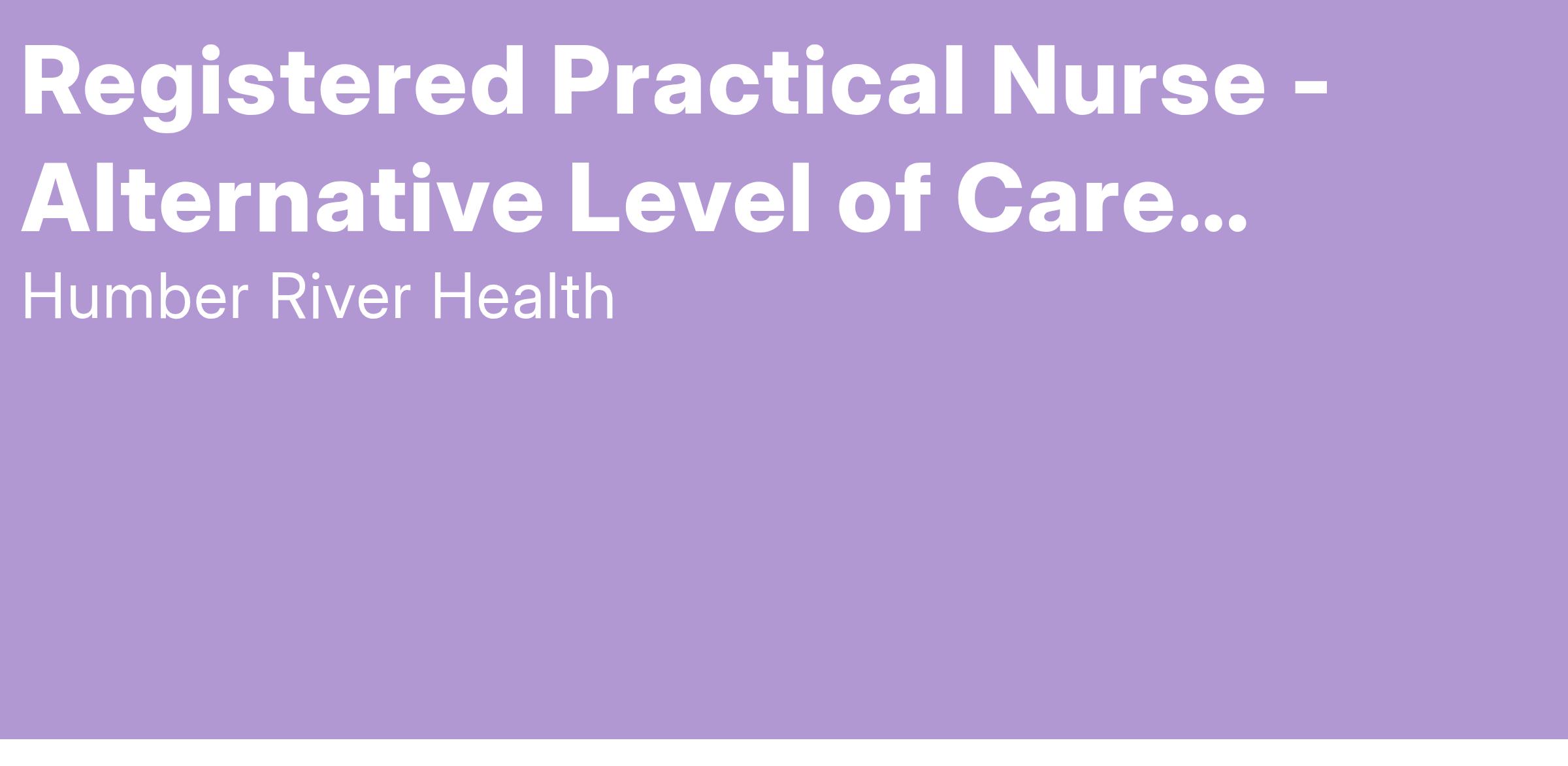 At Humber River Health we continue to advance the important role we play as we advocate for healthcare initiatives in the diverse community we serve.Humber River Health will be one of the occupying hospitals at this site and as such, we are hiring Registered Practical Nurses (RPN) to work in our newly designated Alternative Level of Care (ALC) facility.