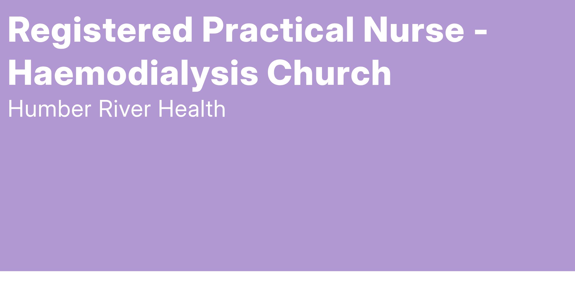 At Humber River Health, we’re not hoping for a renaissance, we are making it happen. As part of our dynamic team, you can lead the way, as we continue our journey towards high reliability care! Right now we are looking for a Registered Practical Nurse to work with our Home Haemodialysis, Nephrology Program at Church.