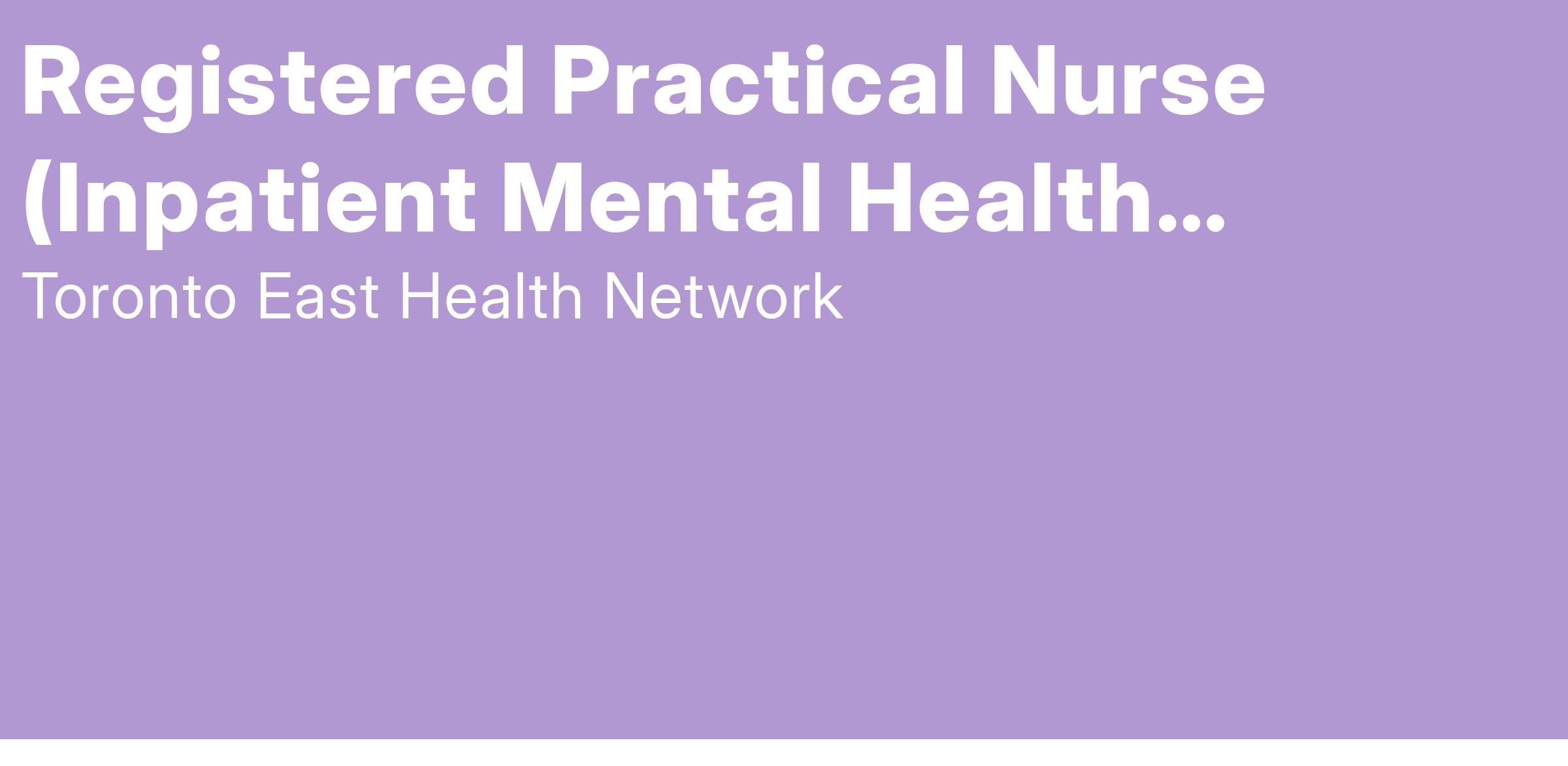 The RPN may also be required to work in other mental health services and programs, based on operational needs.