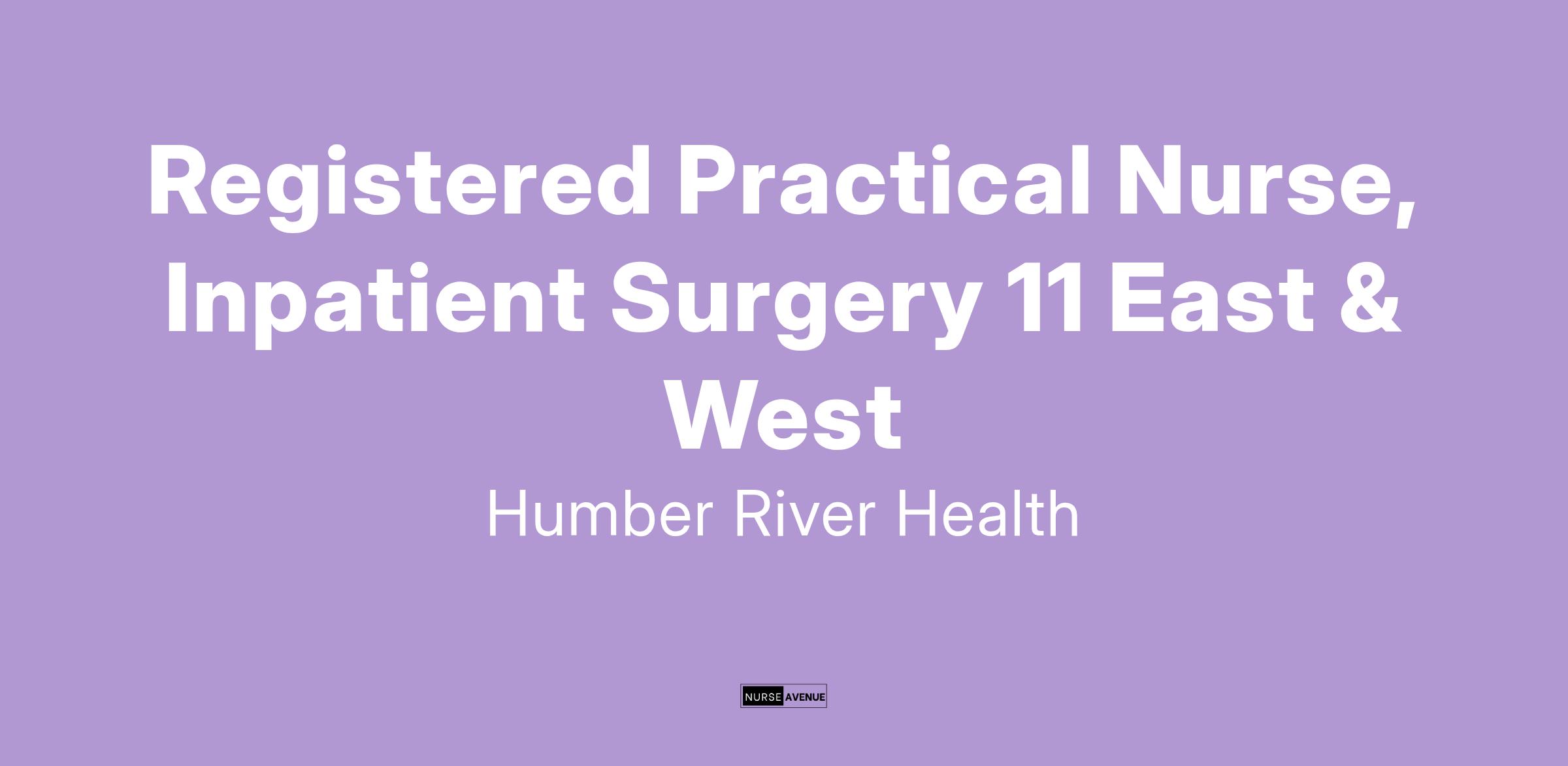 Right now we are looking for a Registered Practical Nurse to work with our Surgical Inpatient Unit 11 East & West