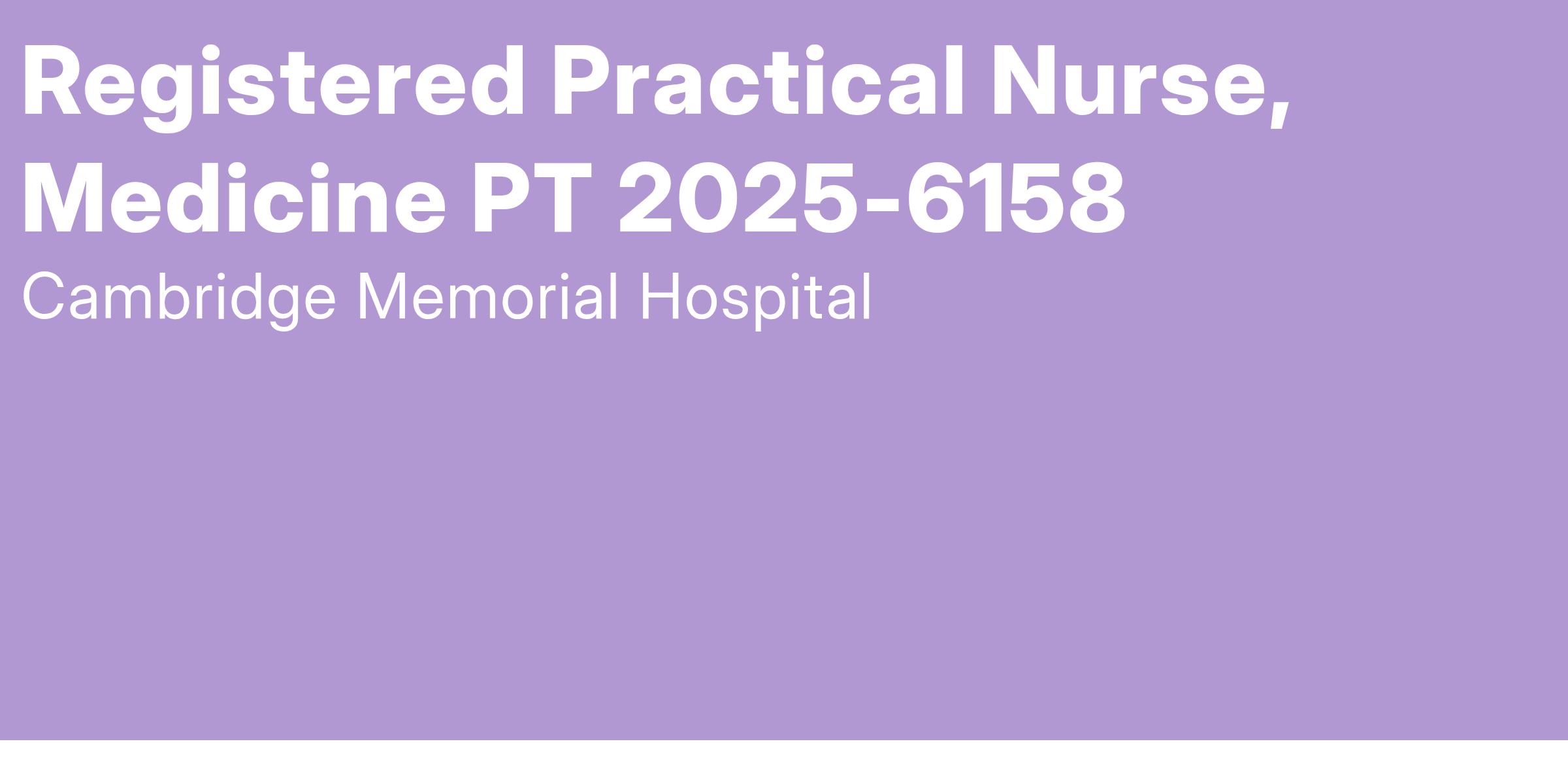 As a key member of the Medicine Team, the Registered Practical Nurse participates in the delivery of exceptional health care to patients by performing a variety of treatments and procedures, assessments, monitoring, interdisciplinary reporting and documenting changes in patient's overall state. Additional responsibilities include assisting the patient with activities of daily living and providing both the patient and family with relevant information/education. The successful incumbent will demonstrate the application of nursing knowledge through patient assessment and utilizes the Three Factor Framework to manage the full scope of practice for patient care. The physical demands of the role may include but are not limited to sitting, standing, walking, pushing, pulling, lifting and bending. Duties as per job fact sheet.