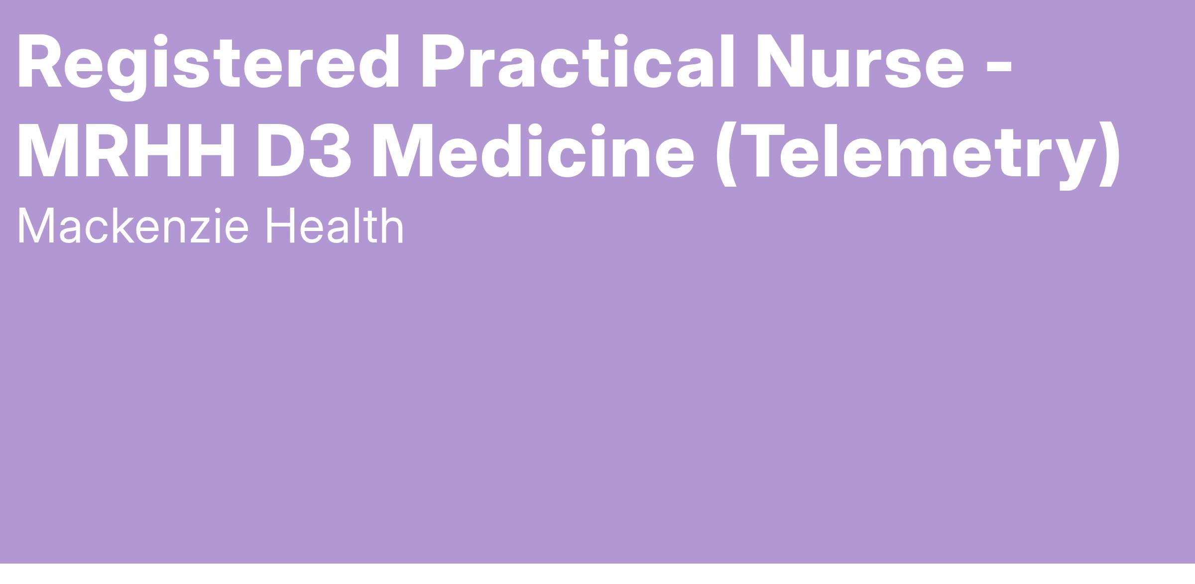 Through a patient and family centered approach, the Registered Practical Nurse provides holistic, high quality and safe care to patients within the scope of practice identified by the College of Nurses of Ontario, evidence-based nursing practices and the standards set by Mackenzie Health. Registered Practical Nurses provide care to patients with complex care needs that are well defined and established, who have predictable outcomes and manageable responses. As a member of and in collaboration with the interprofessional care team, the Registered Practical Nurse contributes to creating a world-class health experience for patients and their families with every interaction based on professionalism, the Hospital’s Commitment to Caring and Mackenzie Health’s values of excellence, leadership and empathy.