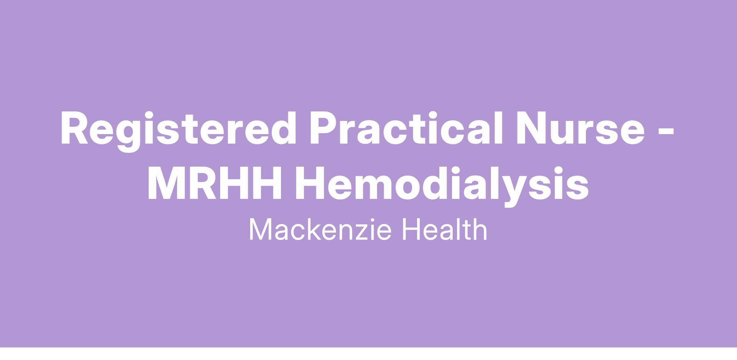 Through a patient and family centered approach, the Registered Practical Nurse provides holistic, high quality and safe care to patients within the scope of practice identified by the College of Nurses of Ontario, evidence-based nursing practices and the standards set by Mackenzie Health. Registered Practical Nurses provide care to patients with complex care needs that are well defined and established, who have predictable outcomes and manageable responses. As a member of and in collaboration with the interprofessional care team, the Registered Practical Nurse contributes to creating a world-class health experience for patients and their families with every interaction based on professionalism, the Hospital’s Commitment to Caring and Mackenzie Health’ s values of excellence, leadership and empathy.