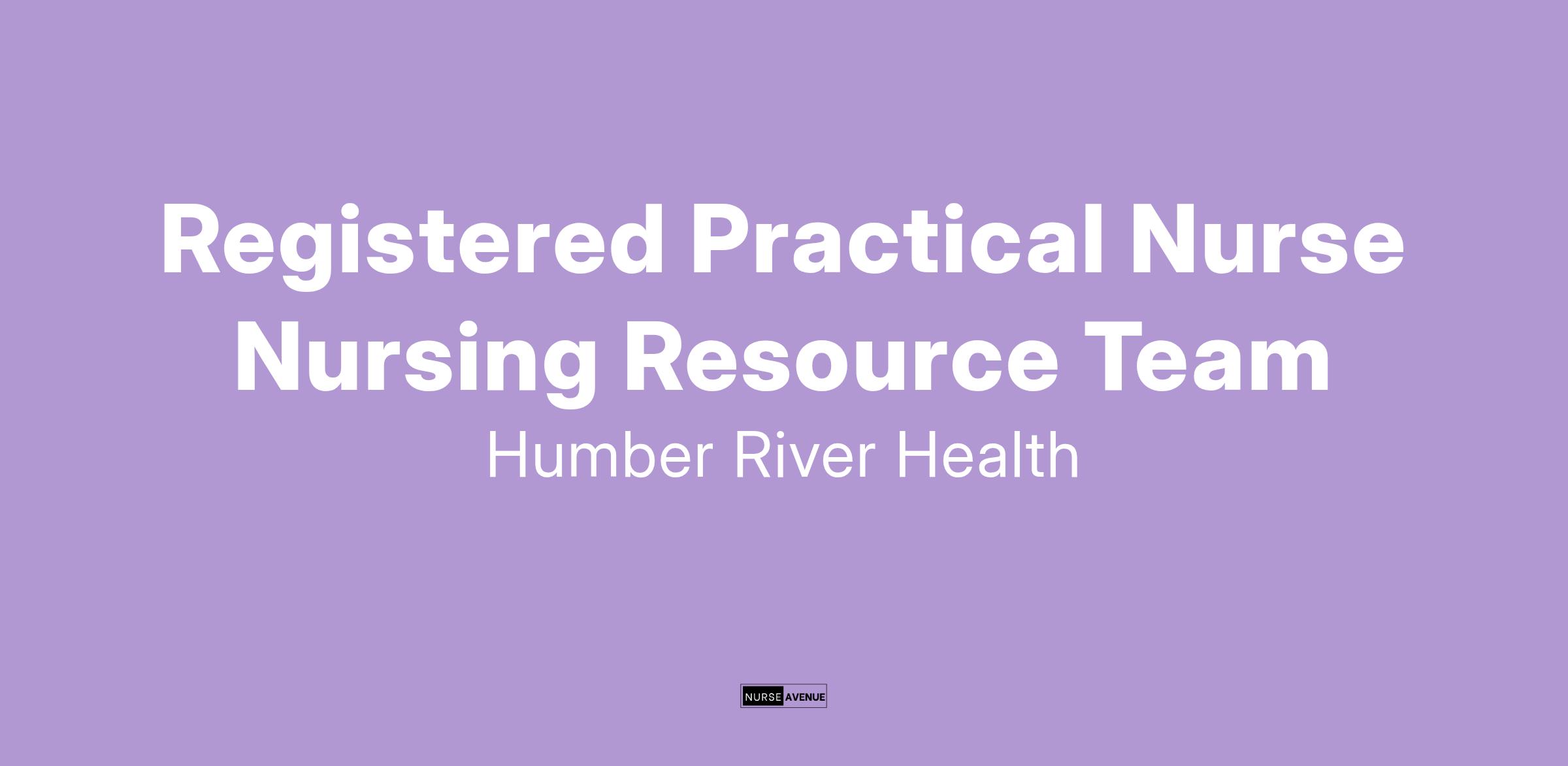Humber River Health's Nursing Resources Team is part of the Staffing Resource Centre within the Hospital. The Registered Nurses within the Nursing Resources Team are trained to cover all Medicine and Surgical Inpatient Units. Members of the Nursing Resource Team have the opportunity to be trained in specialty areas when needed.